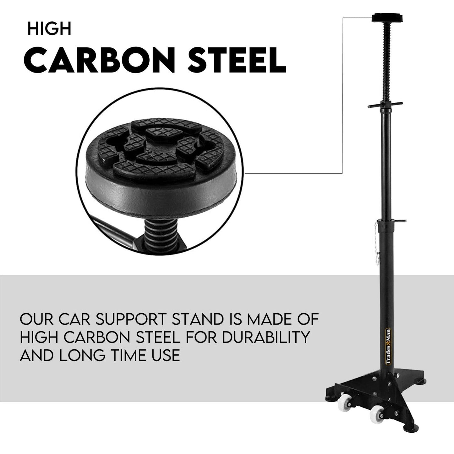 - EASY ADJUSTMENT- The bearing mounted spin handle of this automotive pole jack stand can give you smooth and easy turning when adjusting the height under the load.Powder coated for an environmentally friendly, tough finish