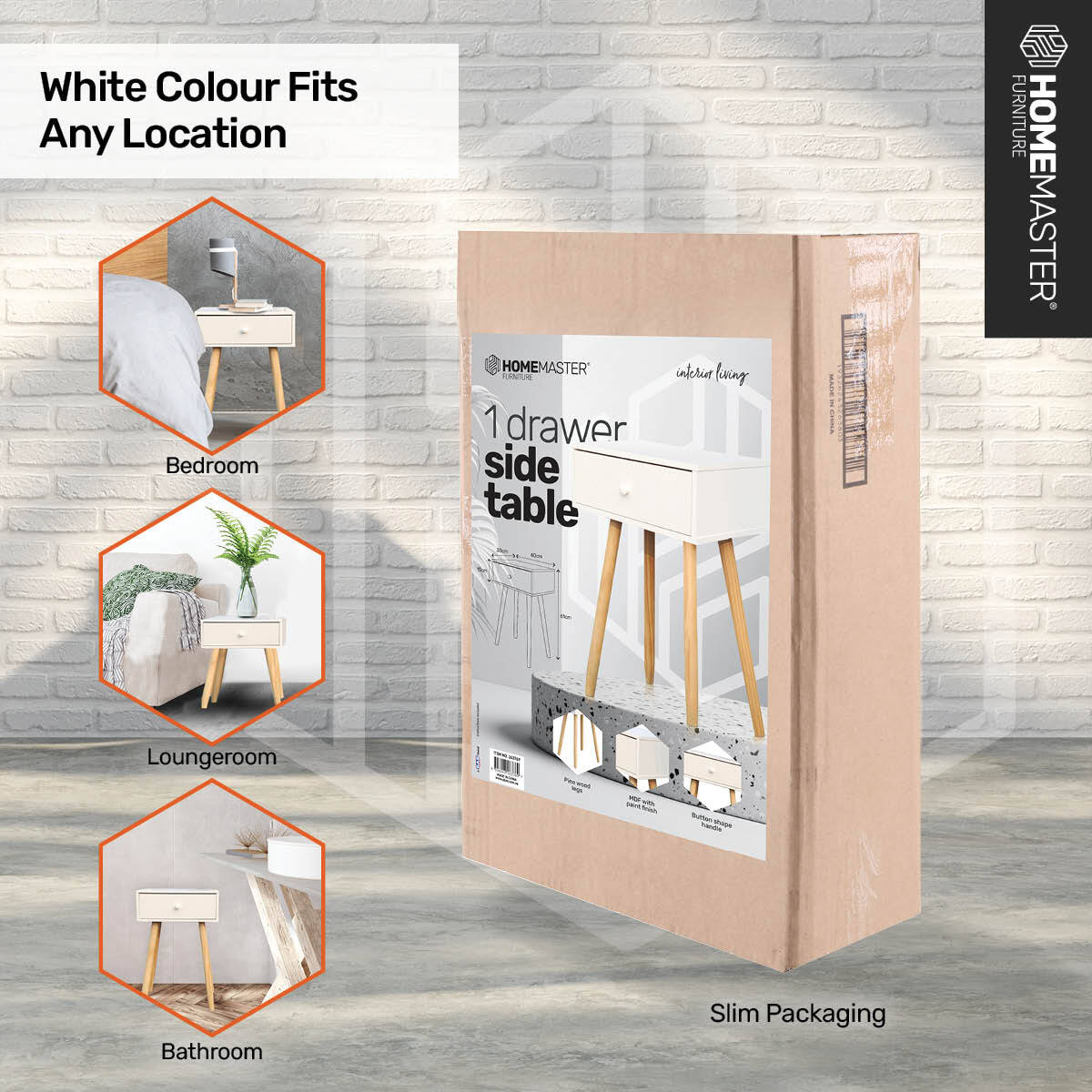 Home Master 1 Drawer Side Table Sleek Modern & Stylish Neutral Design 61cm