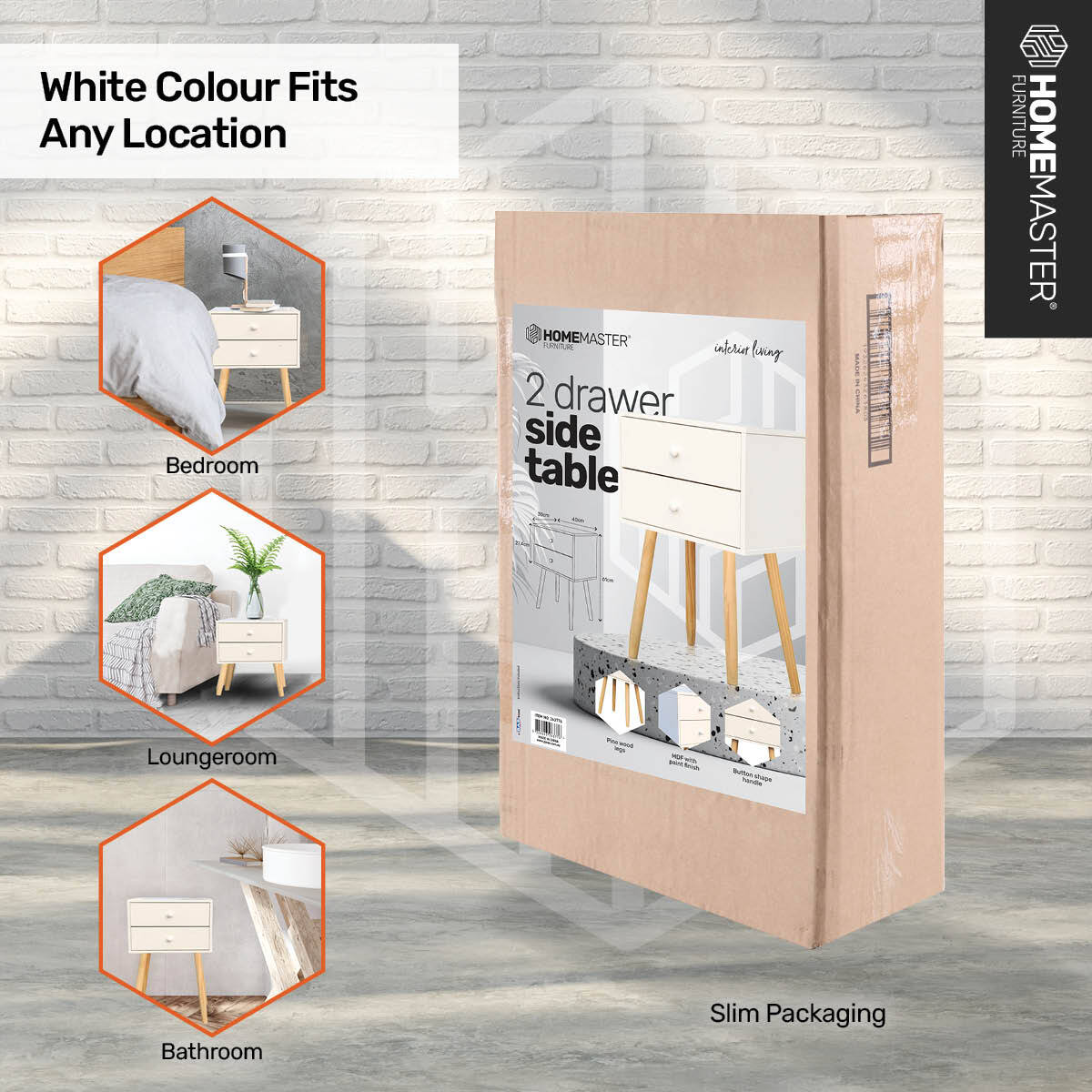 Home Master 2 Drawer Side Table Sleek Modern & Stylish Neutral Design 61cm