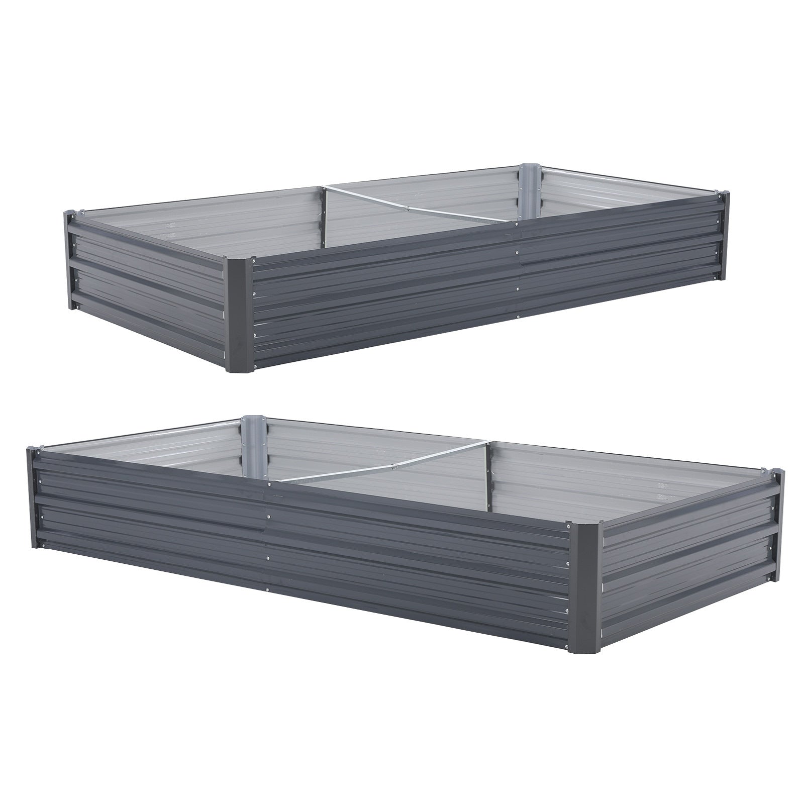 Home Ready 2 Set Raised Garden Bed Galvanised Steel Planter Grow Veggie Plant Flowers 210 x 90 x 30cm - Grey