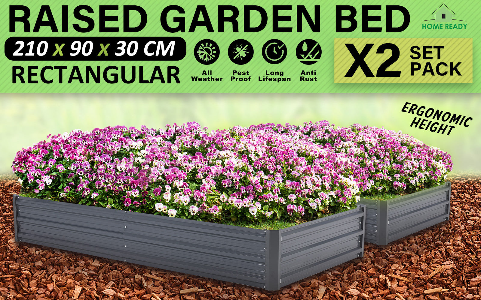 Home Ready 2 Set 210 x 90 x 30cm Grey Raised Garden Bed Galvanised Steel Planter