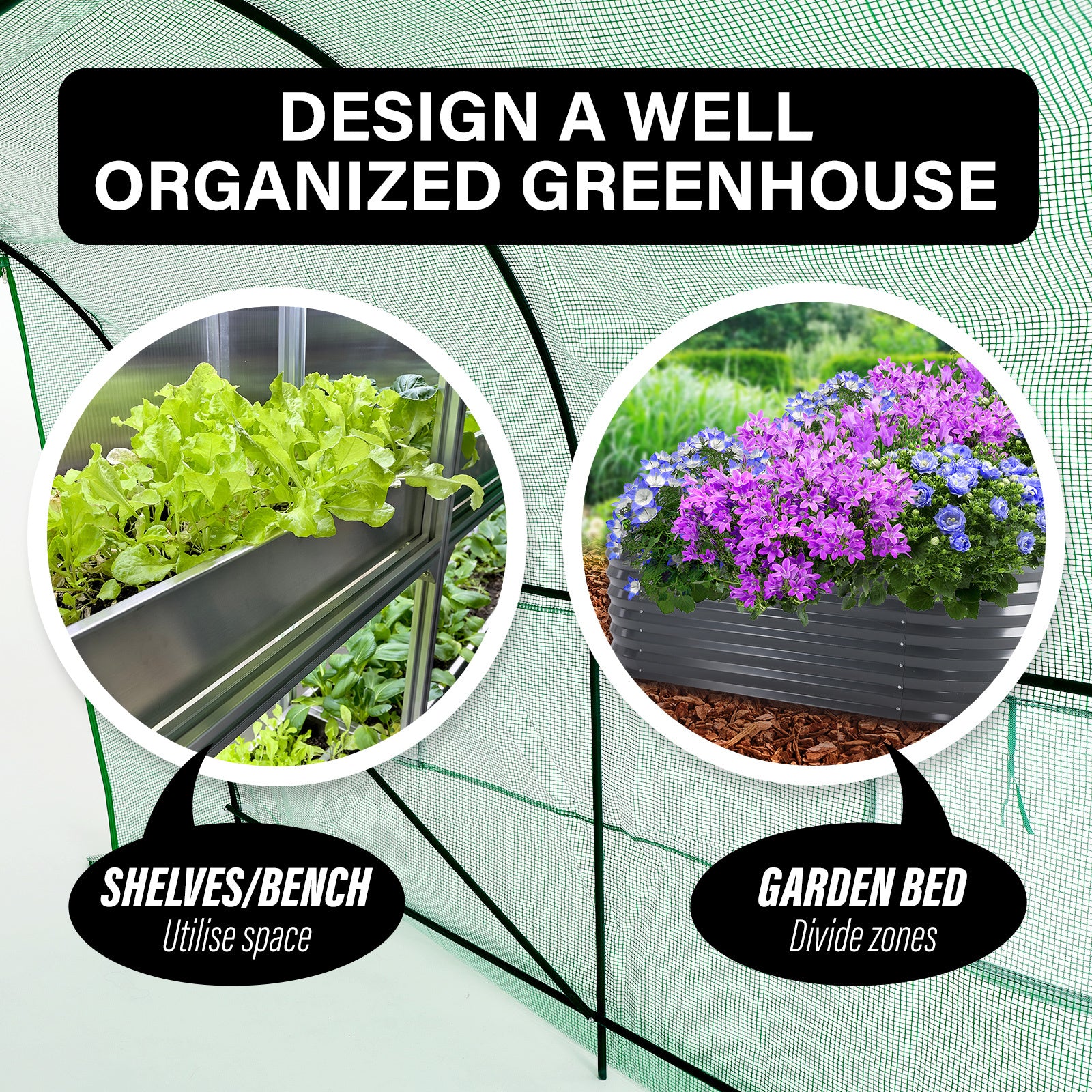 This Home Ready Large Walk-In Steel Frame Greenhouse is a great asset for your project on growing plants, vegetables, or propagating for all year round! This strong and convenient green house will allow you to carry on your project throughout the year. It is ideal for medium to large-scale growing projects. It is very easy to assemble and most importantly, no tools are required! Your plants will be just in the right environment in order to produce the best results!