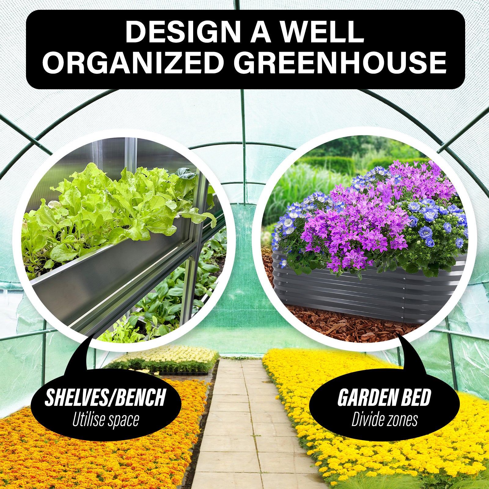 This Home Ready Large Walk-In Steel Frame Arc Roof Greenhouse is a great asset for your project on growing plants, vegetables, or propagating for all year round! This strong and convenient green house will allow you to carry on your project throughout the year. It is ideal for medium to large-scale growing projects. It is very easy to assemble and most importantly, no tools are required! Your plants will be just in the right environment in order to produce the best results!