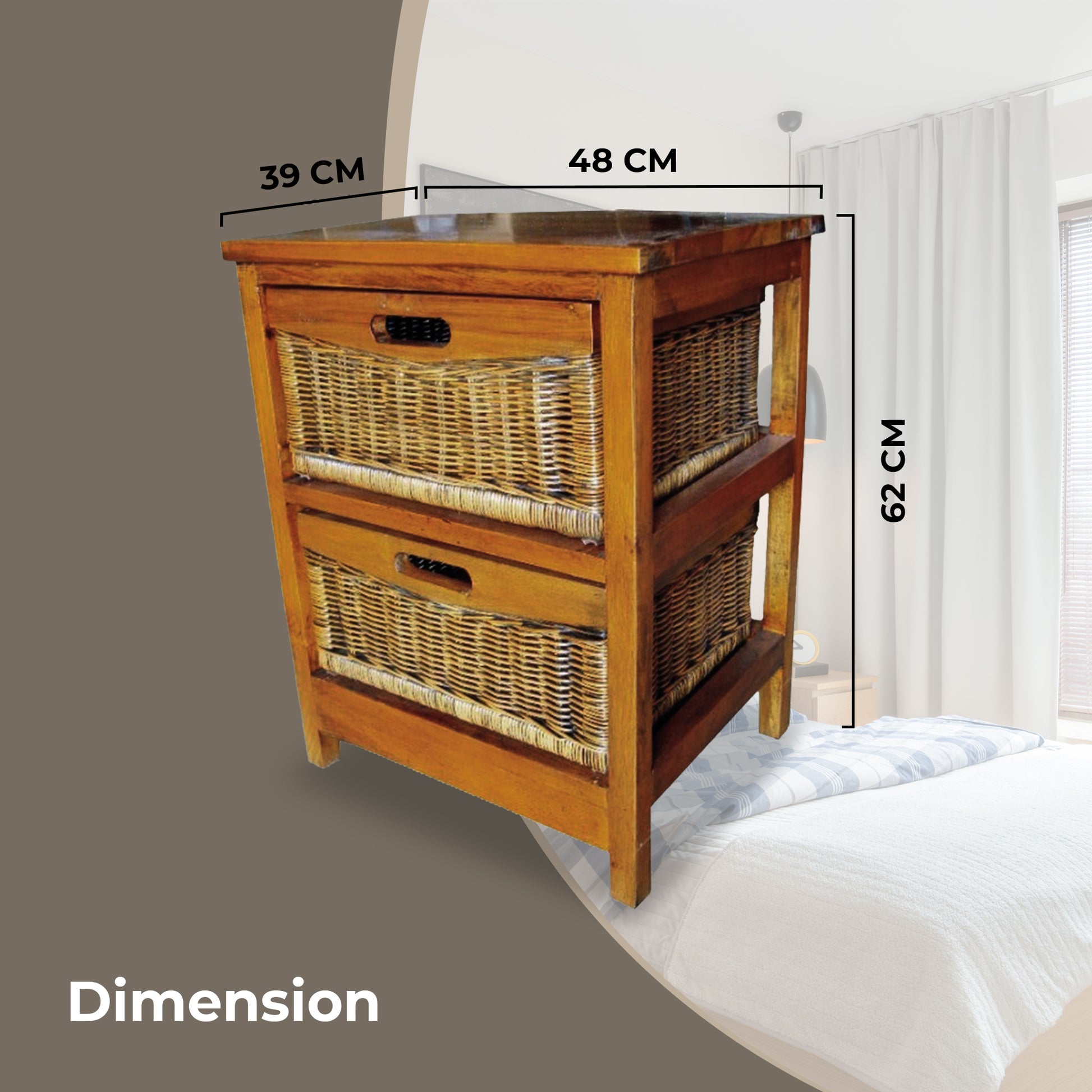 - Drawers made of natural cane