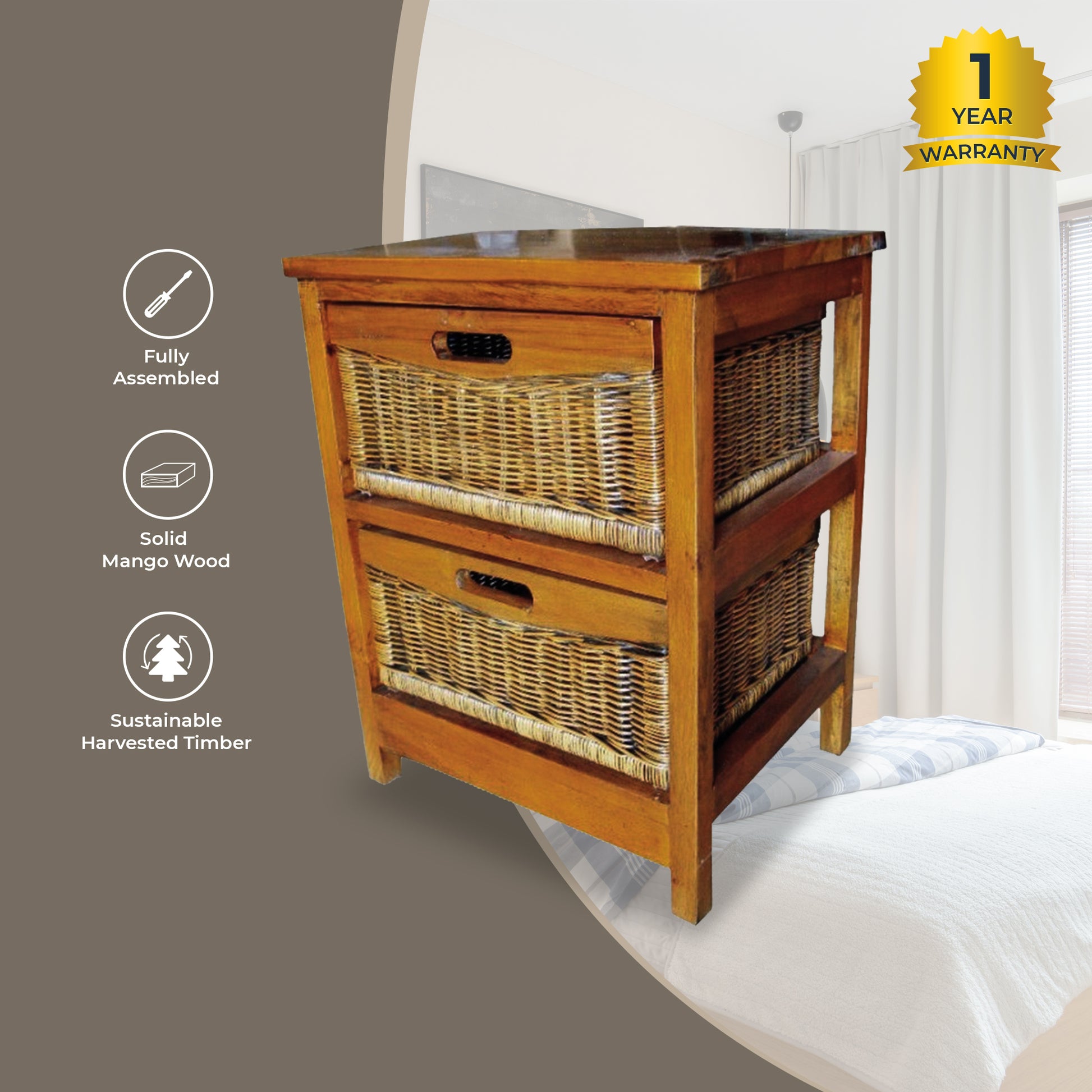 - Strong frame made of sustainably harvested solid mango wood