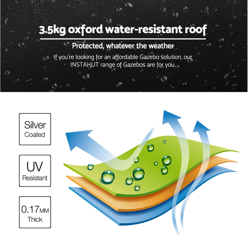 Instahut Gazebo Pop Up Marquee 3x6m Outdoor Tent Folding Wedding Gazebos Black