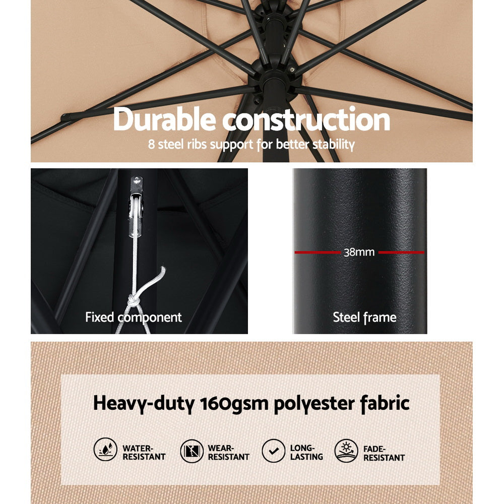 Instahut Outdoor Umbrella 3m Base Beach Pole Garden Tilt Sun Patio UV Beige