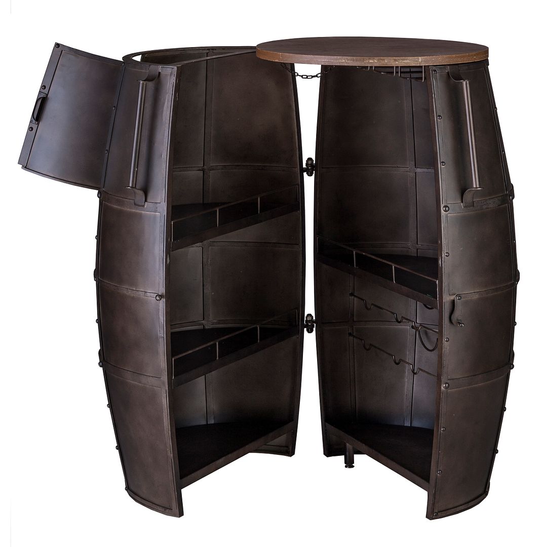 Iron Barrel Shaped Wine Rack Bar Cabinet with Wheels