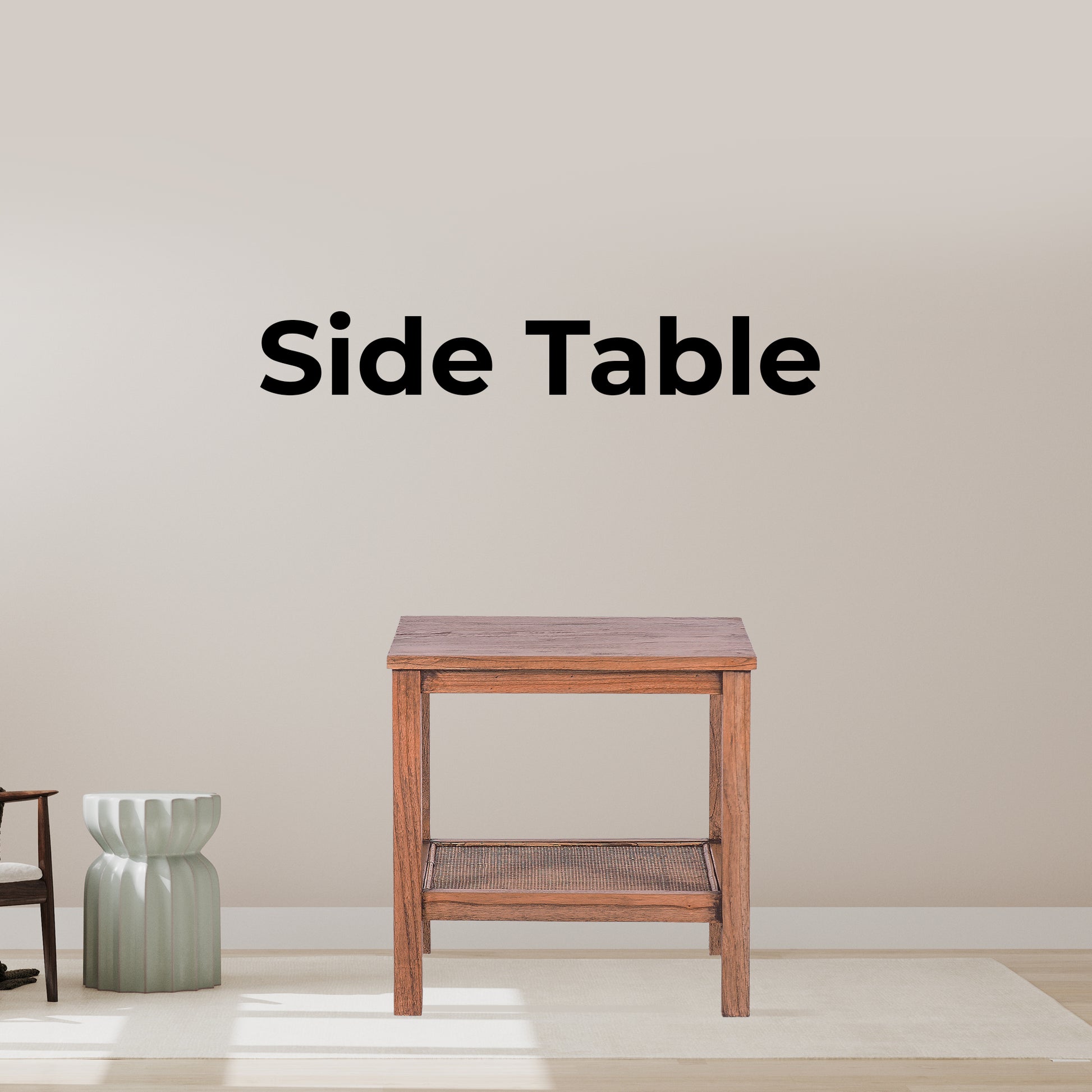 The side table is simply a multi-purpose furniture marvel! It is a table with attractive webbing on the lower part and is made of sustainably harvested solid Mindi wood. The Mindi wood is valued for its strength, longevity, and resistance to deterioration due to mould or moisture. Designed in a Bohemian style, with fibrous whiskers, bumps, slight cracks etc. as natural features, this small piece of furniture brings a sense of coziness and warmth to your living room. The light tobacco finish makes the table suitable to complement diverse interior decor styles or furniture pieces. The fully assembled table comes with a one-year warranty.