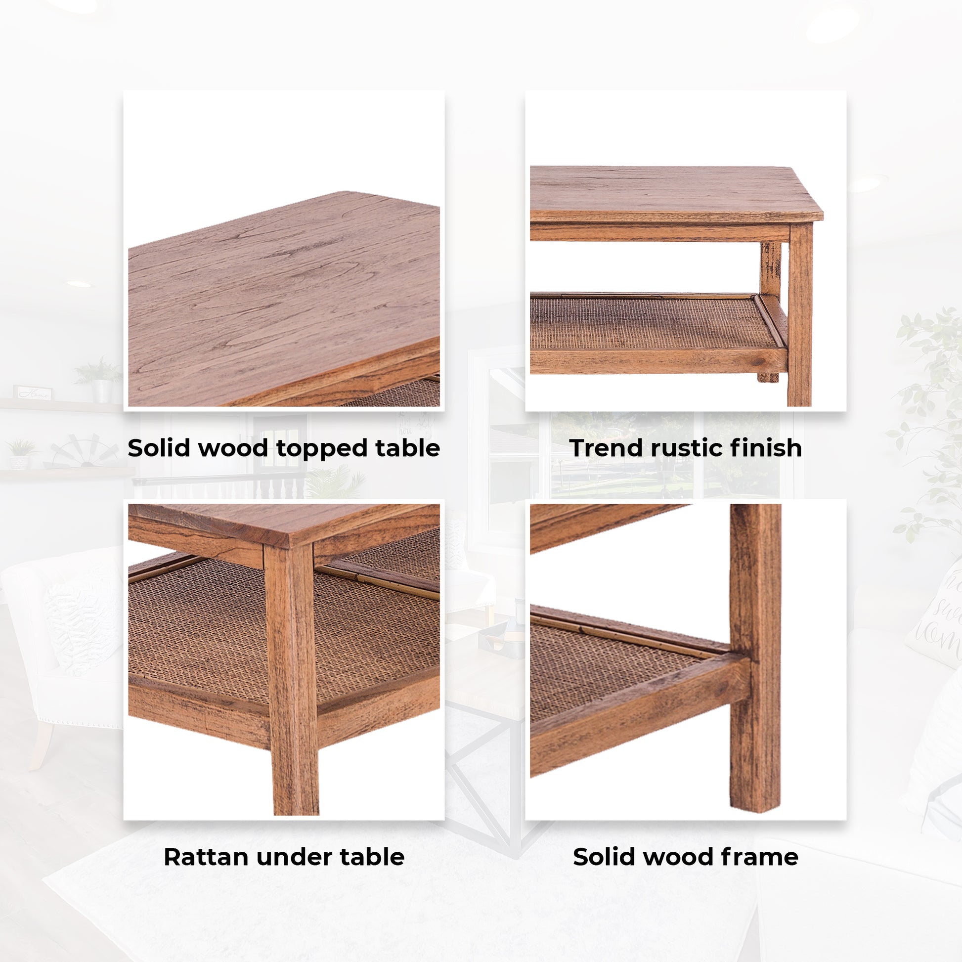 Jasmine Coffee Table 110cm Mindi Timber Wood Rattan Weave - Brown