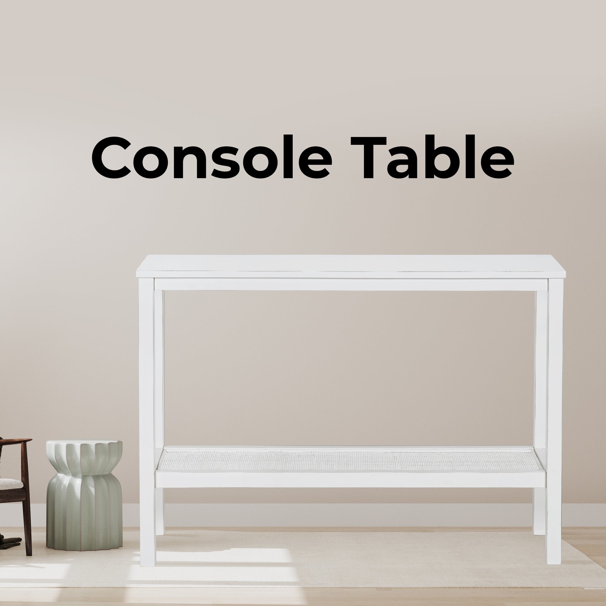 Jasmine Console Hallway Entry Table 110cm Mindi Timber Wood Rattan - White