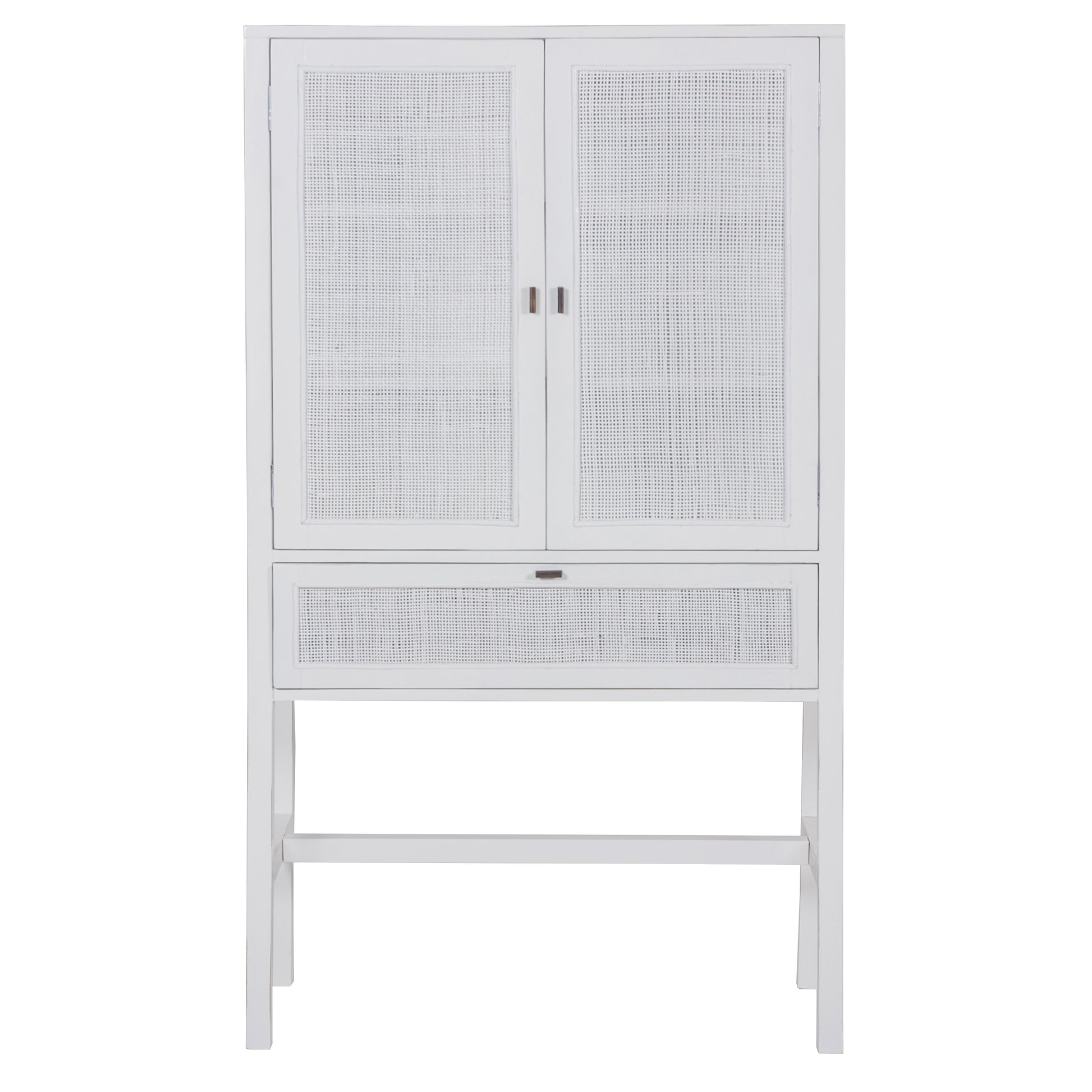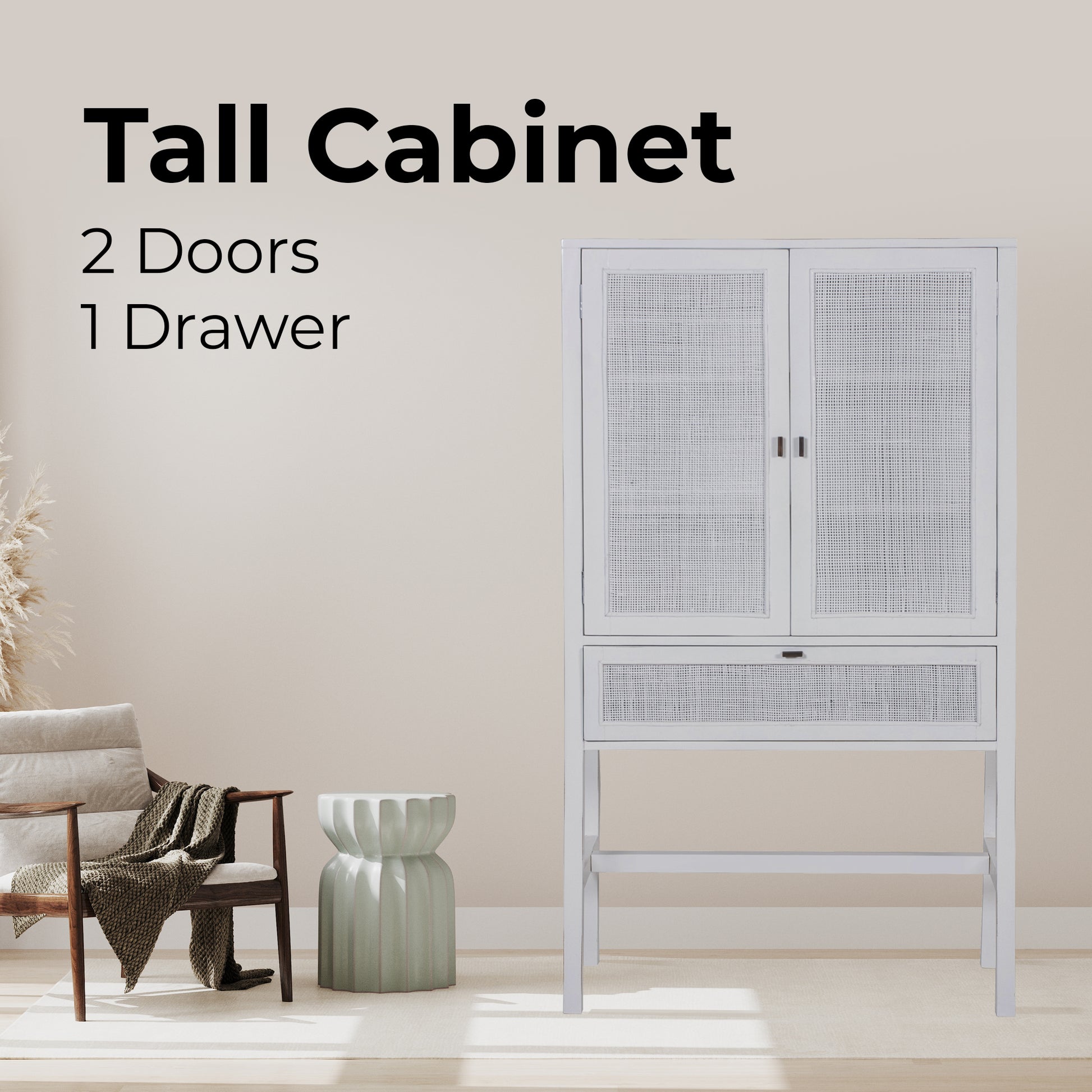 Jasmine Tall Storage Cabinet 90cm 2 Door 1 Drawer Mindi Wood Rattan - White