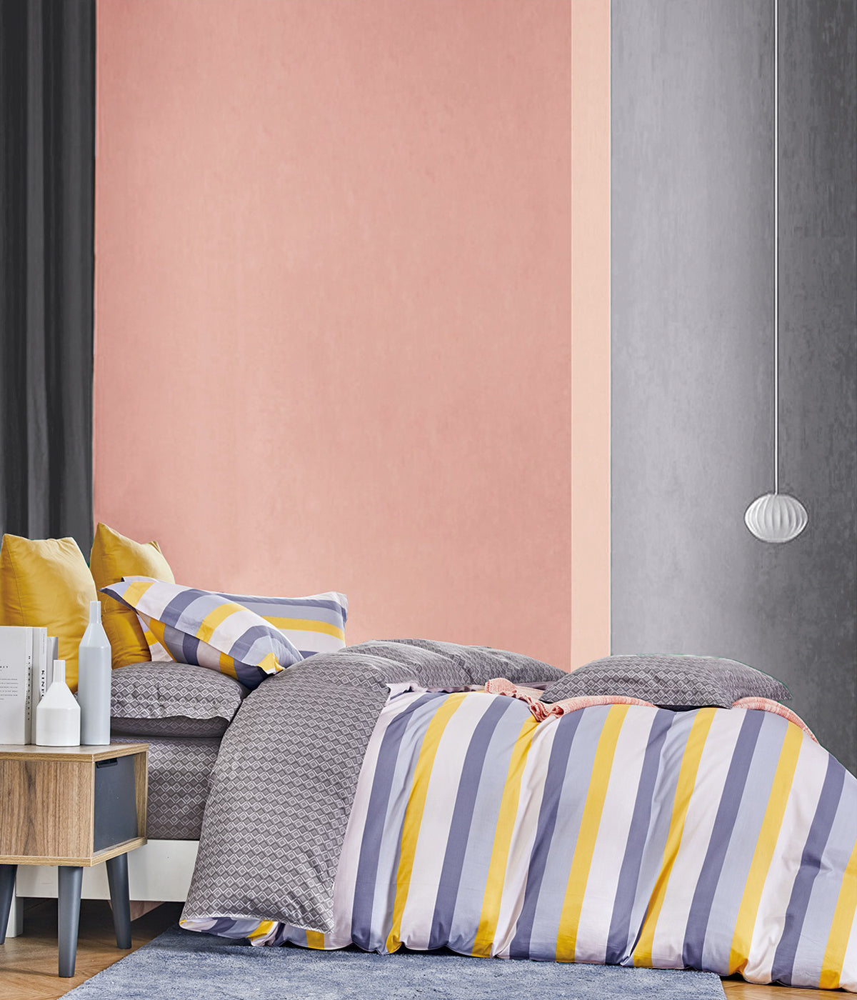 Classic stripes in fun colours is a must have this season. Our Jimmy Quilt Cover Set features yellow, grey and whites paired together create refreshing look this season. The reverse print adds small detail to balance the simple striped front.