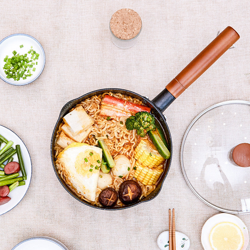 Justcook Japanese-style Aluminium non-stick Xueping pot, popular in Japan, is multifunctional, has high-end quality, and makes your life better. This nonstick saucepan is made of aluminum, including a rust and abrasion-resistant coating for ultra-durability, and heats quickly and evenly. Ergonomic design on wooden handle makes it is comfortable to grip. The edge of the pan is designed with a pour spout, which will allow the soup to pour smoothly and avoid spilling.