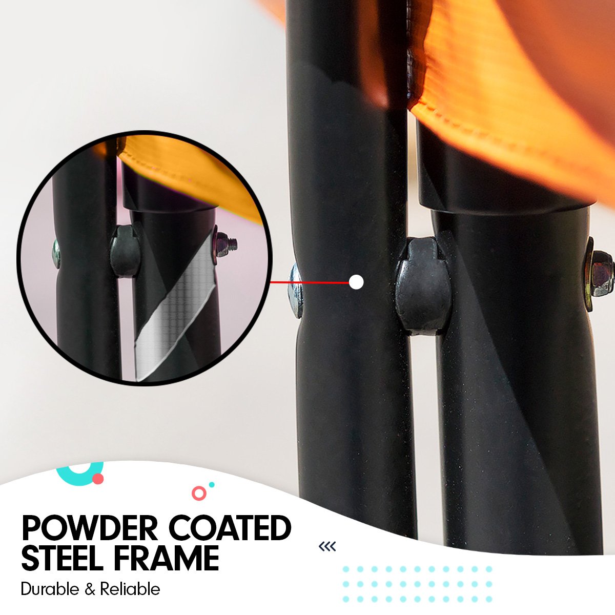 - Frame: Powder Coated Steel