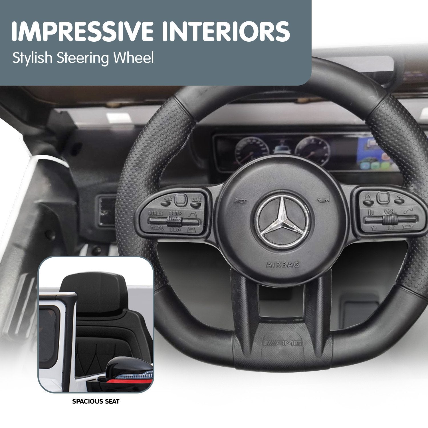 Introducing the Mercedes Benz AMG G63 Ride-On Car - the most exciting gift for little car enthusiasts. This sporty Mercedes-licensed replica boasts the boxy silhouette and cools detailing of its full-size counterpart.