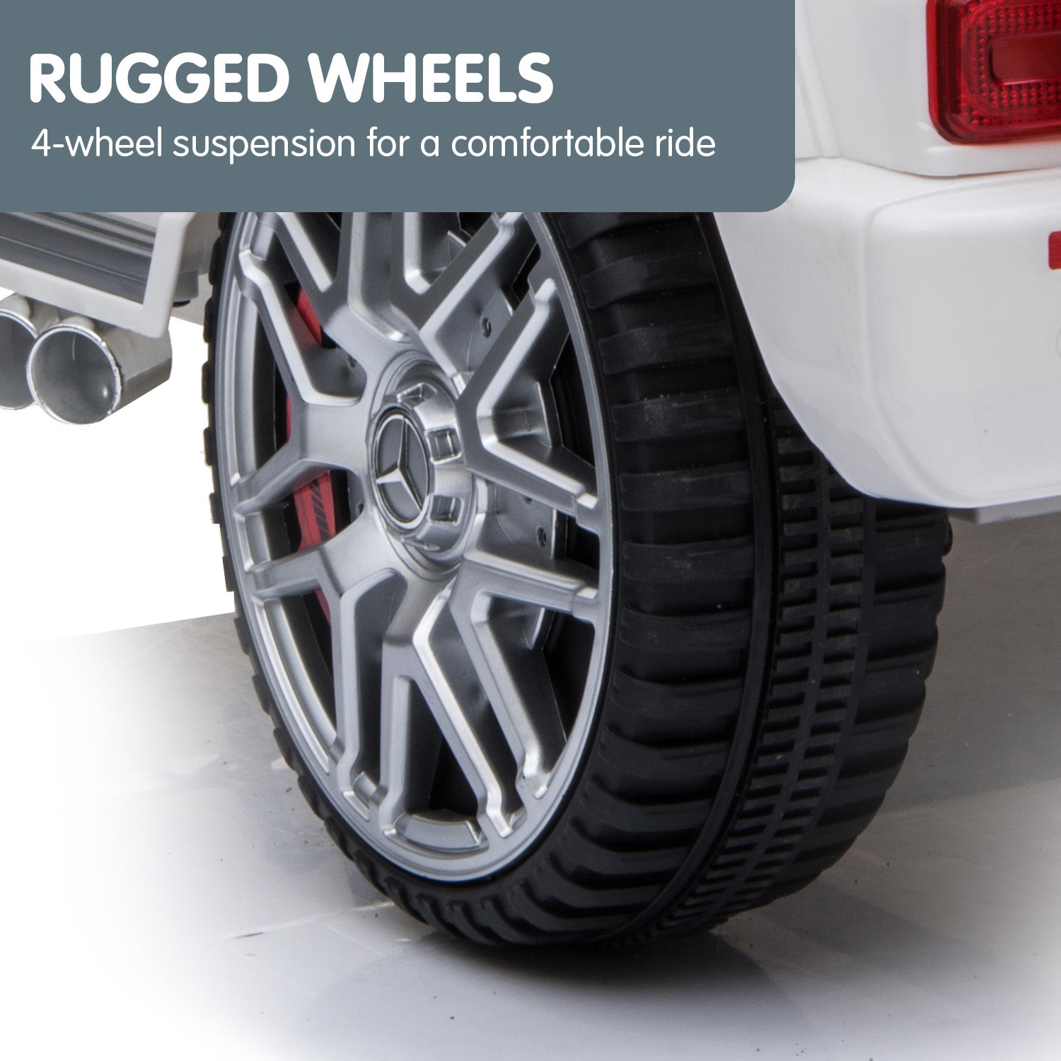 Introducing the Mercedes Benz AMG G63 Ride-On Car - the most exciting gift for little car enthusiasts. This sporty Mercedes-licensed replica boasts the boxy silhouette and cools detailing of its full-size counterpart.