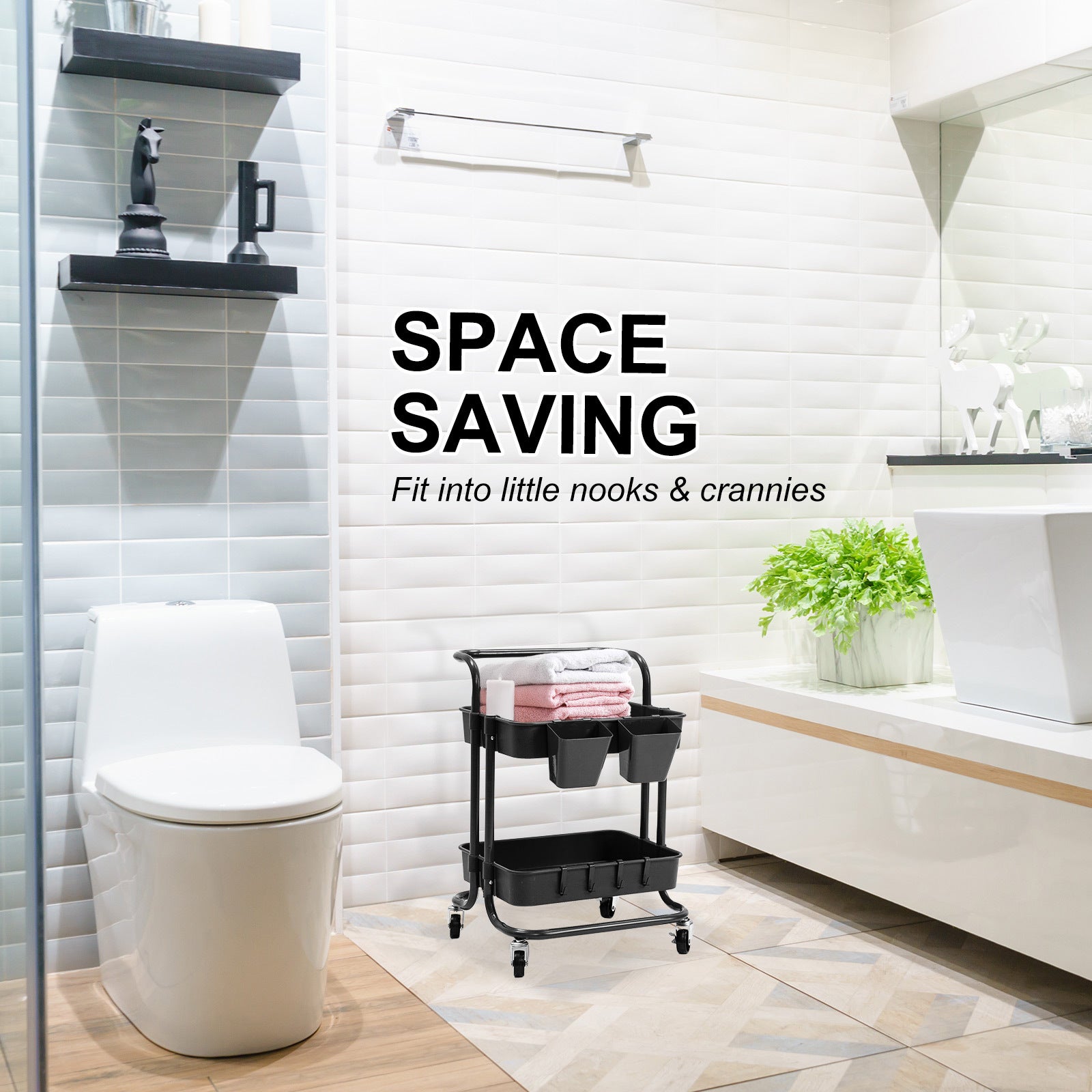 Kandoka 2 Tier Black Trolley Cart Storage Utility Rack Organiser Swivel Kitchen