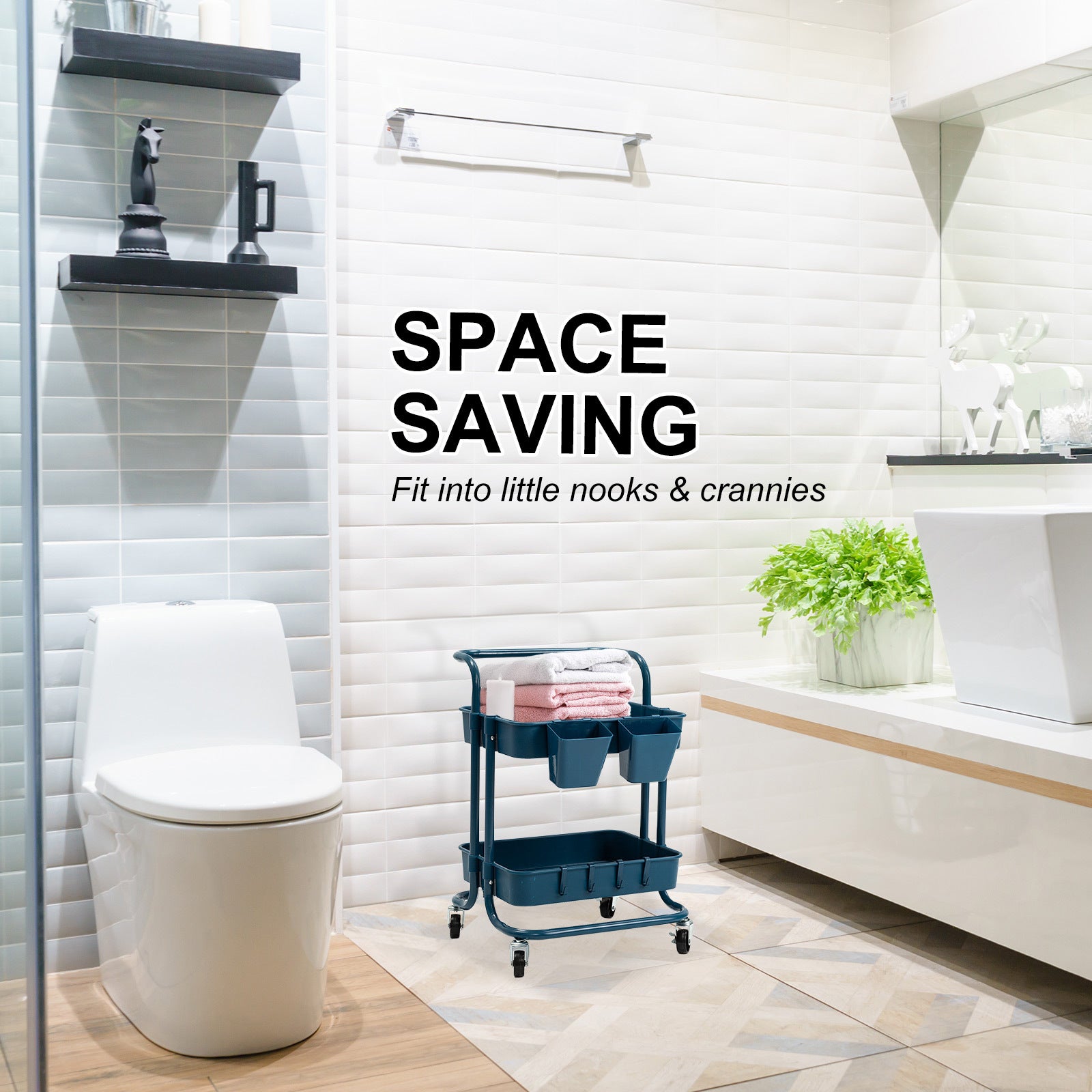 Kandoka 2 Tier Blue Trolley Cart Storage Utility Rack Organiser Swivel Kitchen