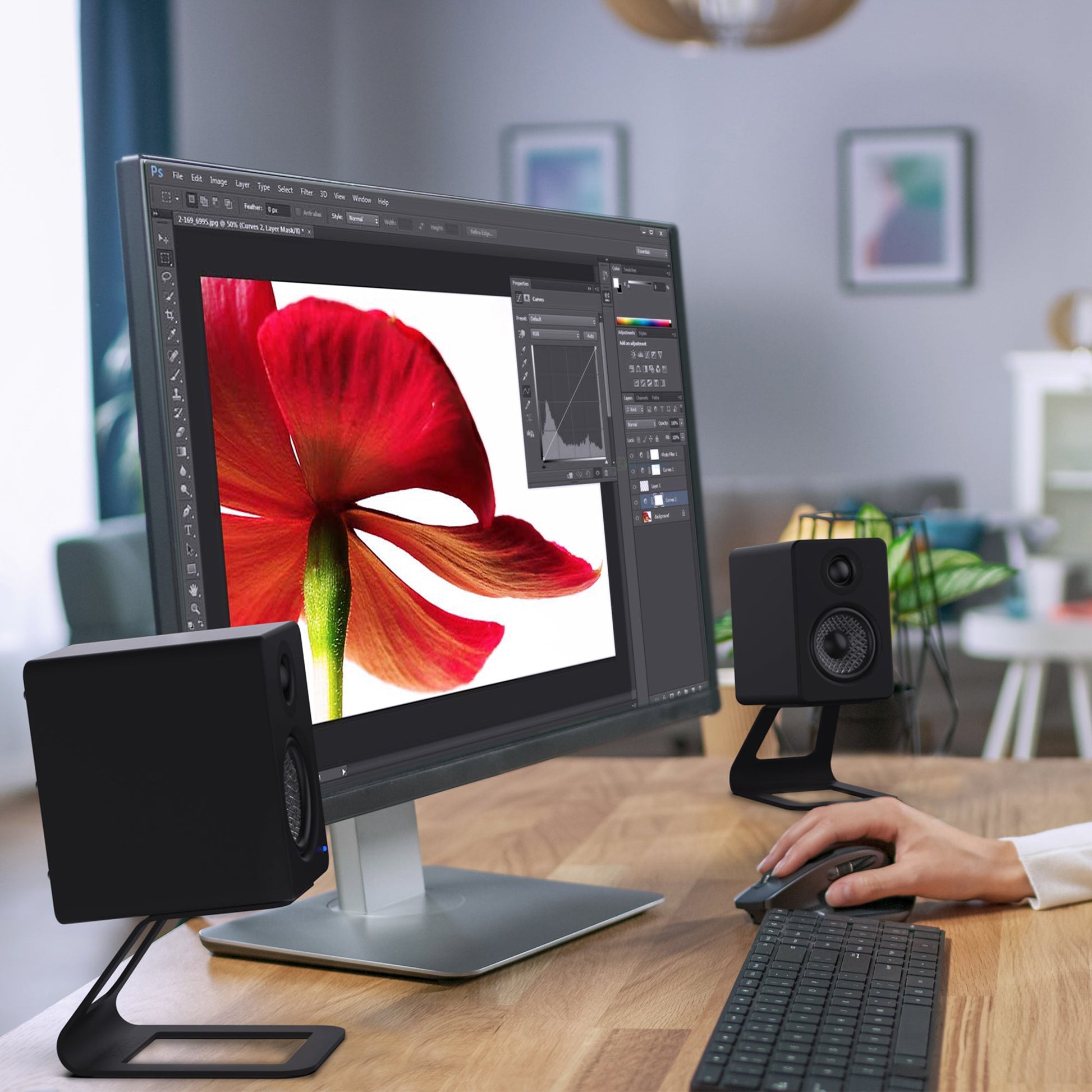Kanto SE2 Elevated Desktop Speaker Stands for Small Speakers - Pair, Black