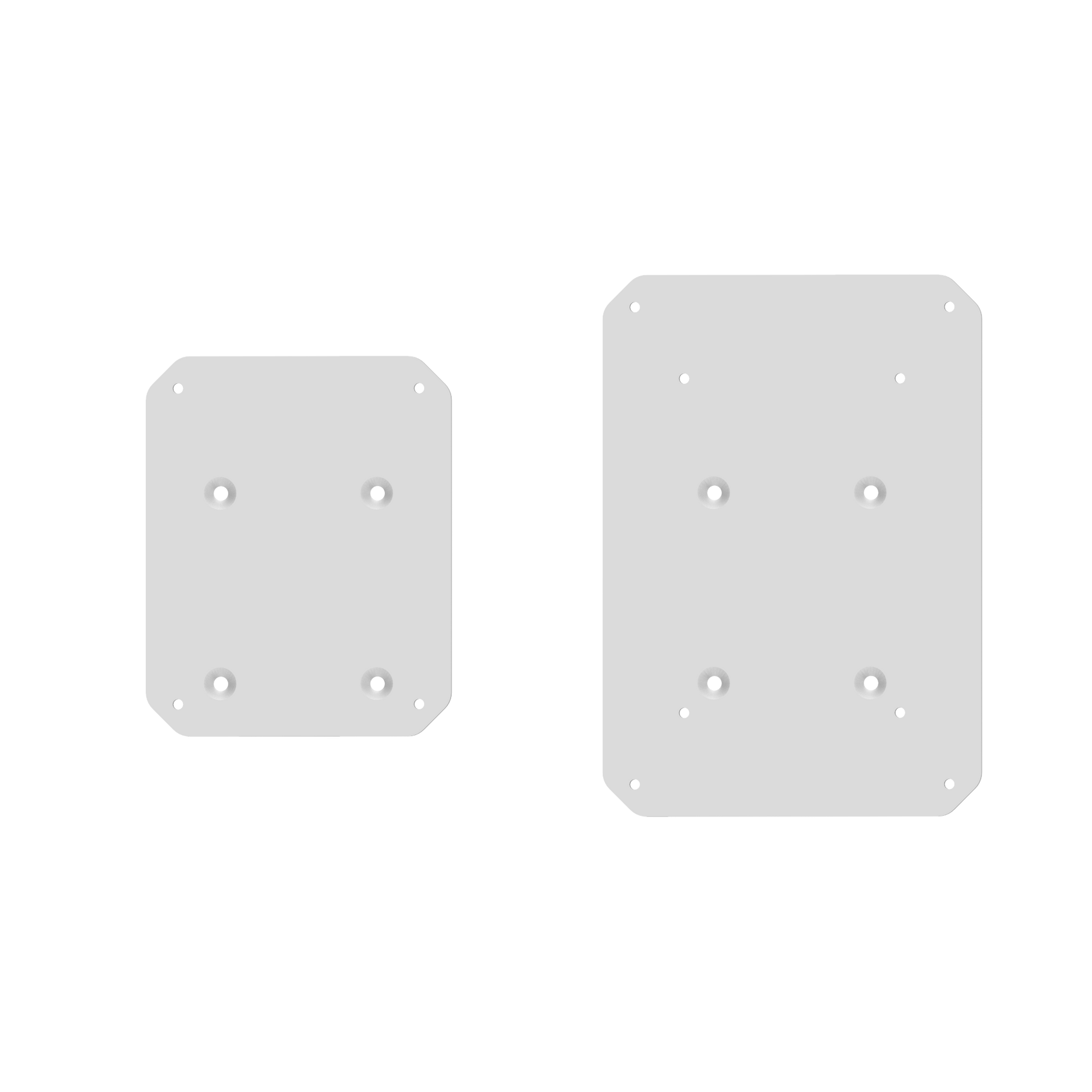 2 x Speaker Stands, 2 x Small Top Plates, 2 x Large Top Plates, 2 x Foam Pads for Small Top Plates, 2 x Foam Pads for Large Top Plates, 2 x Bags for Filling Material, Hardware, Manuals
