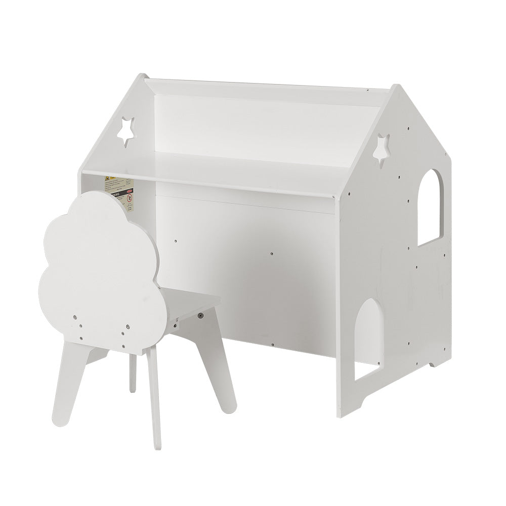 Gift your kids the perfect playset with a Keezi Kids Table and Chair Set. Recommended for ages 3 and up, this home-shaped hutch is the perfect piece of unique decor that suits any room of the home and promotes creative play. Encourage your child to draw, read, write and play all from the same spot. The table and chairs are made from durable MDF board and non-toxic paint for a long-lasting piece that will endure all kinds of play. It's not just a table - the piece also comes with two storage compartments perfect for books and toys, and a chalkboard to keep little hands busy (and off your walls!). When you're finished, the chair fits neatly under the table to create a single structure, perfect to save space. The smooth finish makes it incredibly easy to clean - just wipe and go! It's also easy to assemble with the included instructions, so you can have it ready to go right away for your kids' room, cubby, or playhouse. Best of all, the set is EN71 European Safety of Toys certified, so you know your little ones are in good hands. Spark your children's imagination, fuel their interests and encourage creative play with the Keezi Kids Table and Chair Set.