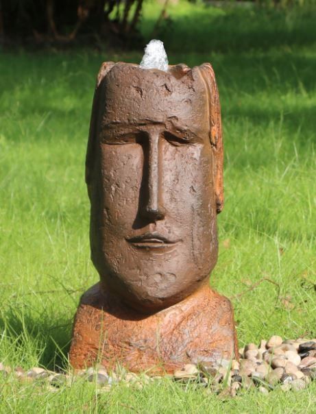 What's more, this sculpture has water bubbling form the top of his head trickling down in to a small pool creating a self contained fountain which rotates the water back up and around again. Imagine Bird of Paradise, Philodendron and Agave surrounding this fascinating figure.