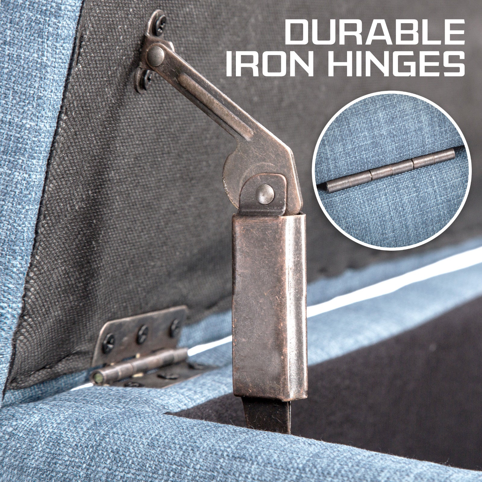 La Bella 102cm Light Grey Blue Storage Ottoman Stool Fabric