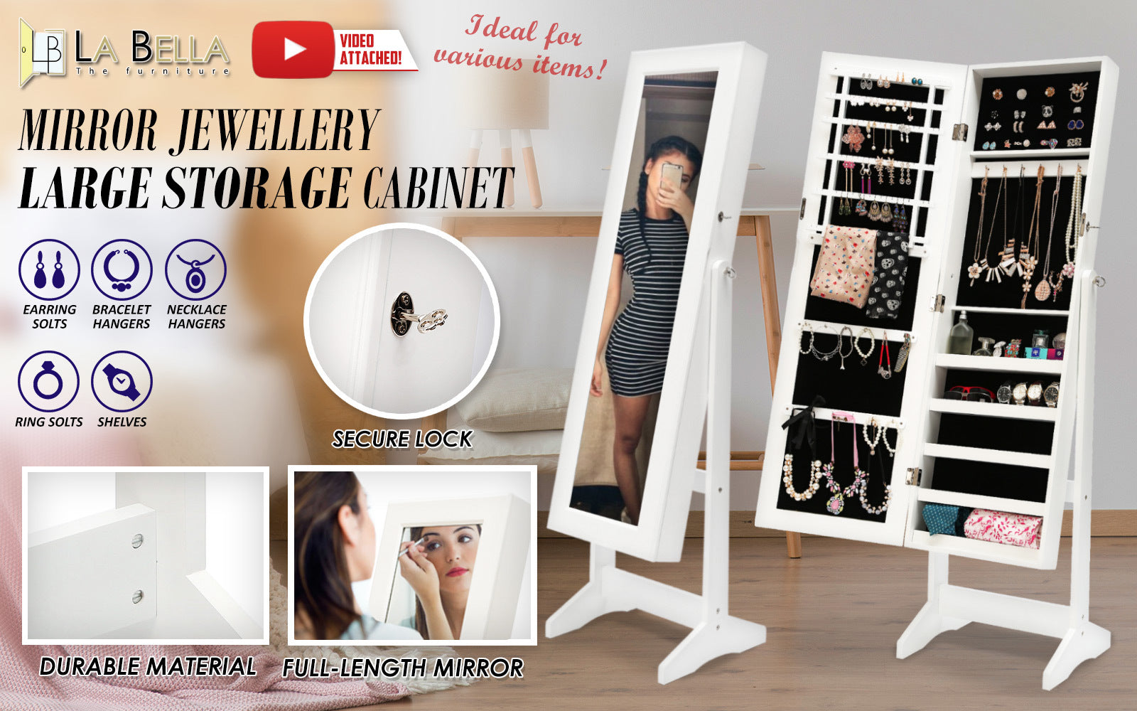 - Lockable door so your precious jewelleries are safe