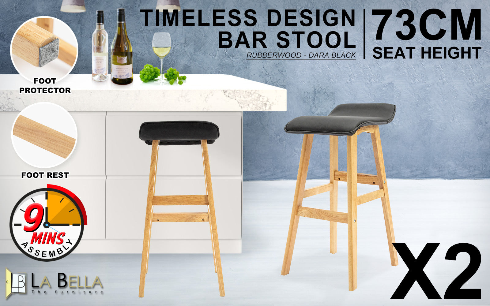 Our La Bella DARA Rubberwood Bar Stools adopt a simplistic in its design with an appeal that never goes out of fashion. It is suitable for places wishing for a mid-century modern or Scandinavian style. Plus, rubberwood is one of the more stable construction materials available for furniture.