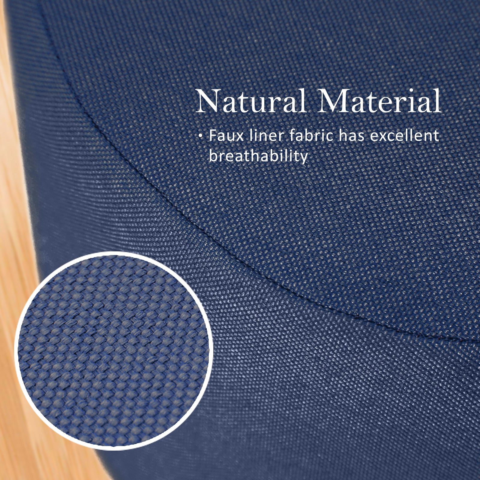 La Bella 2 Set Dark Blue Fabric Ottoman Round Wooden Leg Foot Stool