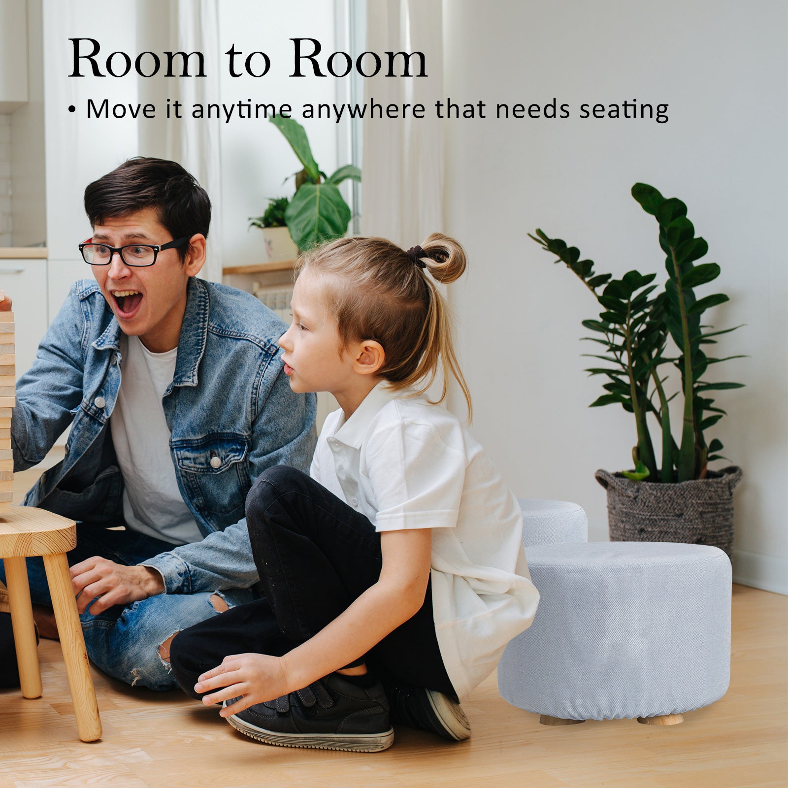 La Bella 2 Set Light Blue Fabric Ottoman Round Wooden Leg Foot Stool