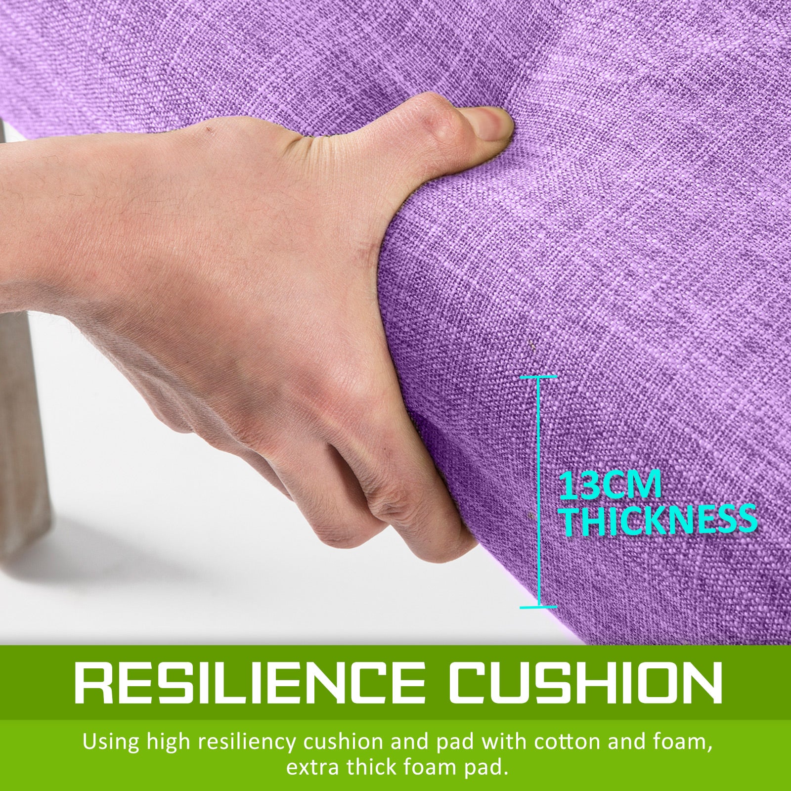 - 13cm thick seat cushioning with high resilience foam