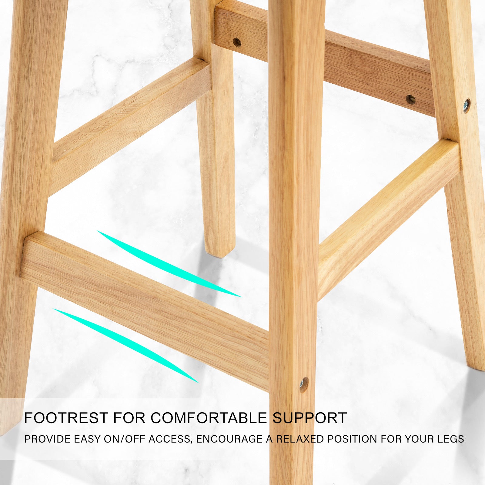 - Sturdy rubberwood stool legs