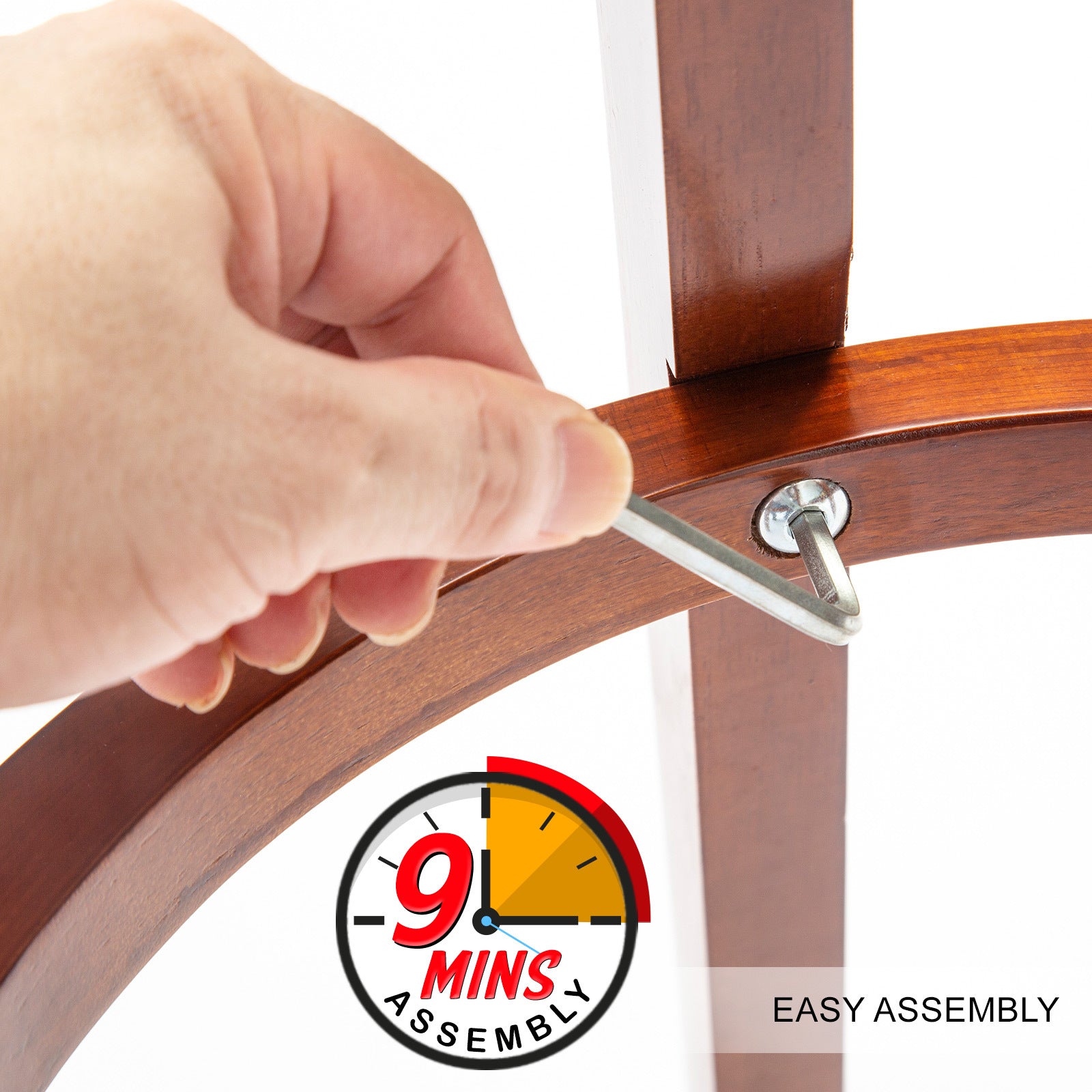 To ensure safety, the legs are tapered outwards to form a slight A-shape, so that the bar stool is well-balanced without occupying too much space. Additionally, the legs are made of solid rubberwood with a circular footrest to ensure extra sturdiness and support. This does not mean comfort is sacrificed as the seat itself is upholstered with PVC leather padding. Installed with a swivel mount plate, the seat will swivel 360� so that you can reach whatever you want, maximising accessibility. Stool legs are also equipped with anti-slip protectors to minimise scratches onto wooden and tile floors. To give you a peace of mind, the bar stool will only take you approximately 9 minutes to assemble.