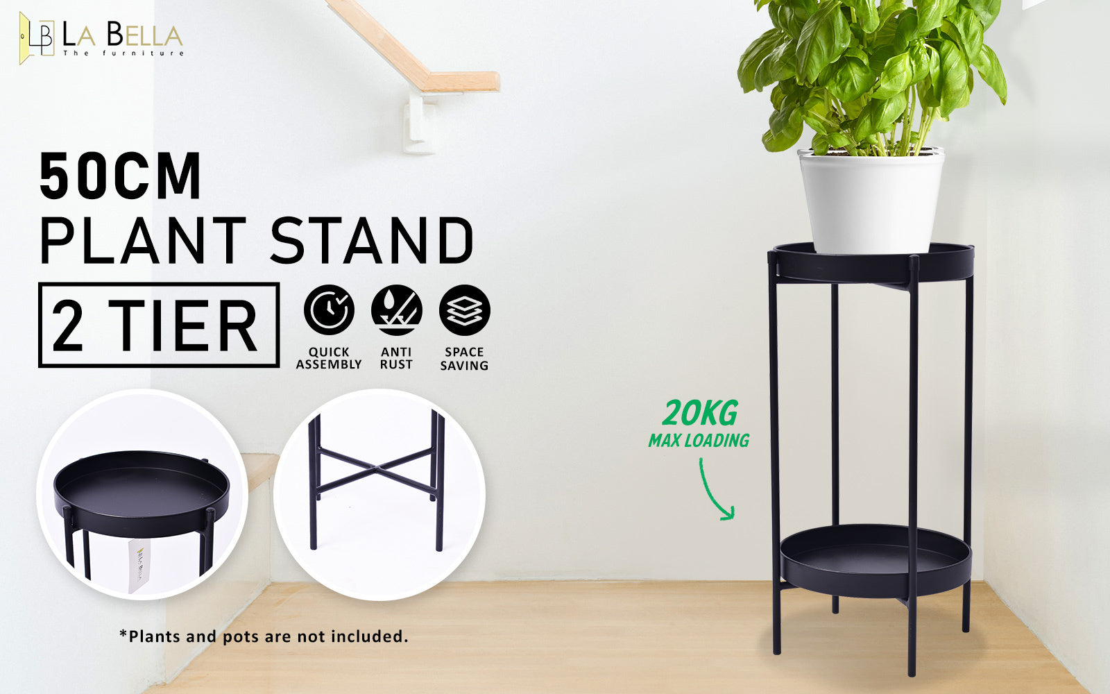 This La Bella plant stand does not require any installation. Don't hesitate and start to create a greenery space that you would love. It is ideals for balconies, hallways, patio, office, or bathrooms, etc.
