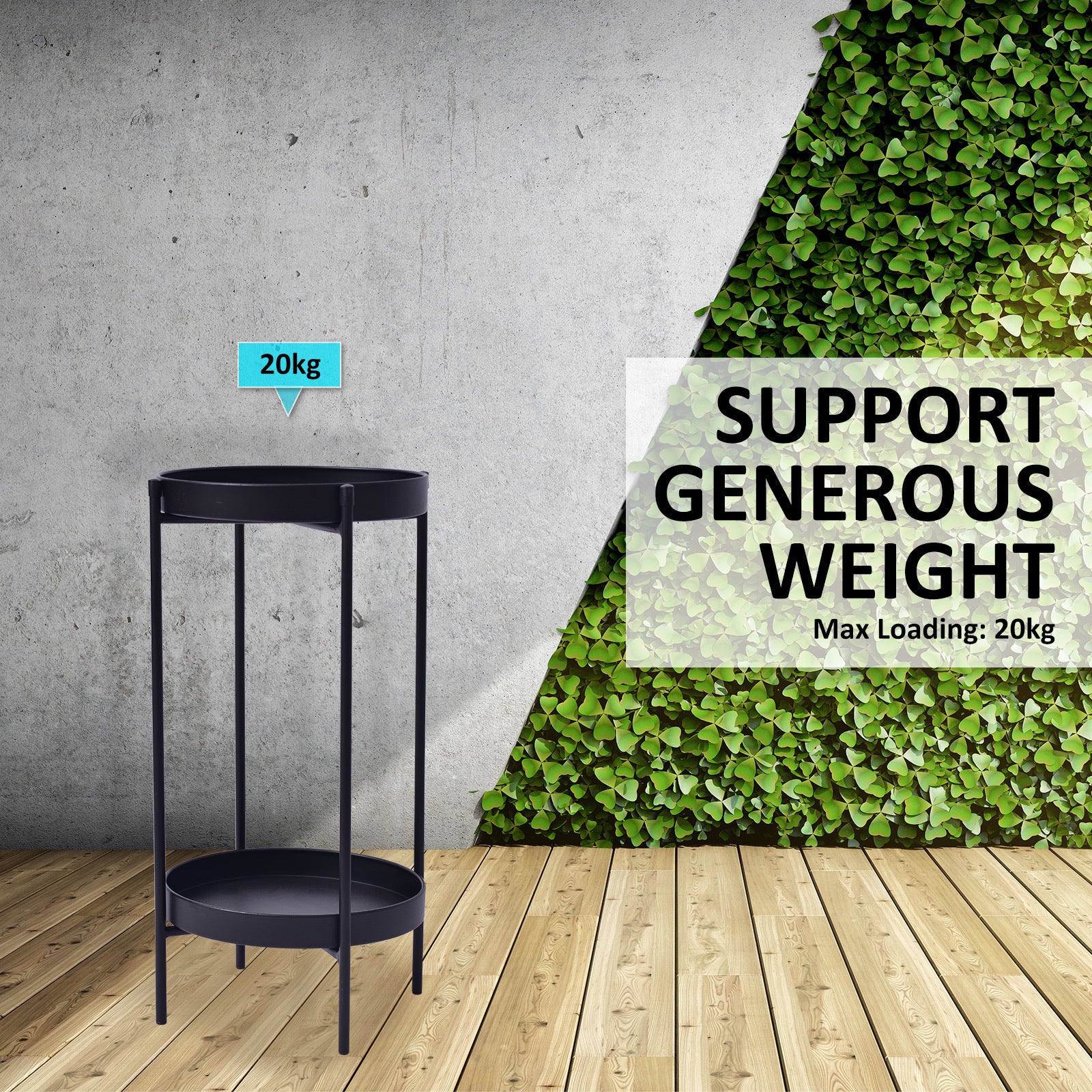 The whole construction is well-balanced without occupying much space. More than that, the stand can hold up generous weight which suits most of the plants, such as herbs, succulents, exotic plants. The anti-slip floor protectors at the bottom of the legs minimise scratches on floors and maximise its stability.