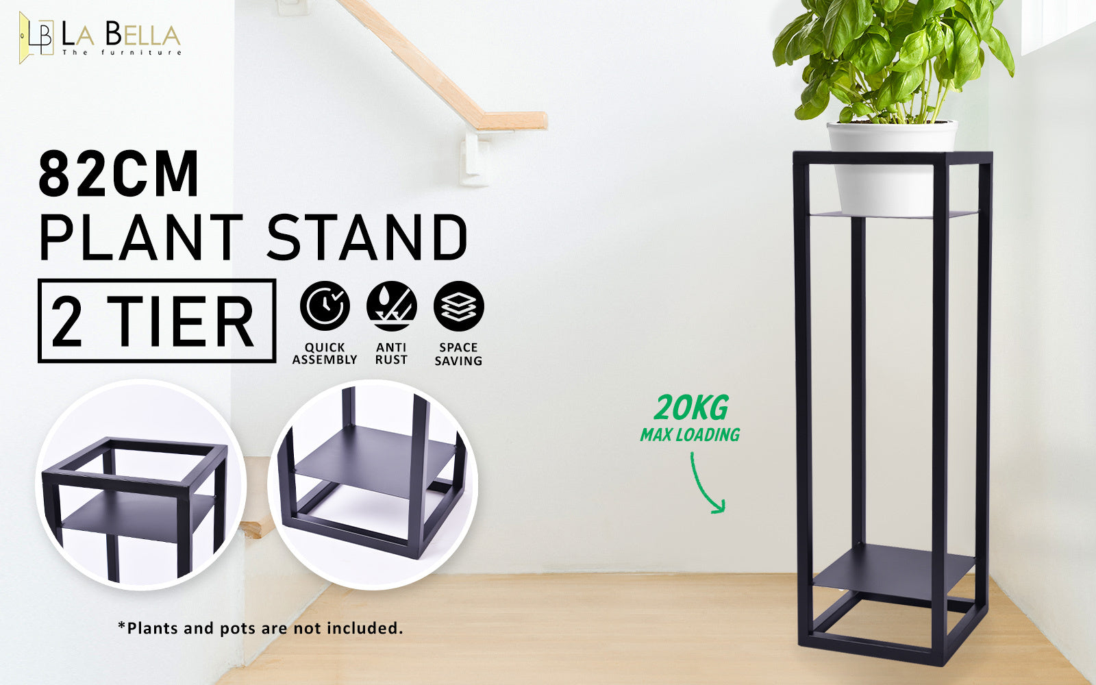 La Bella 82cm Black Plant Stand Planter Shelf Rack 2 Tier Steel