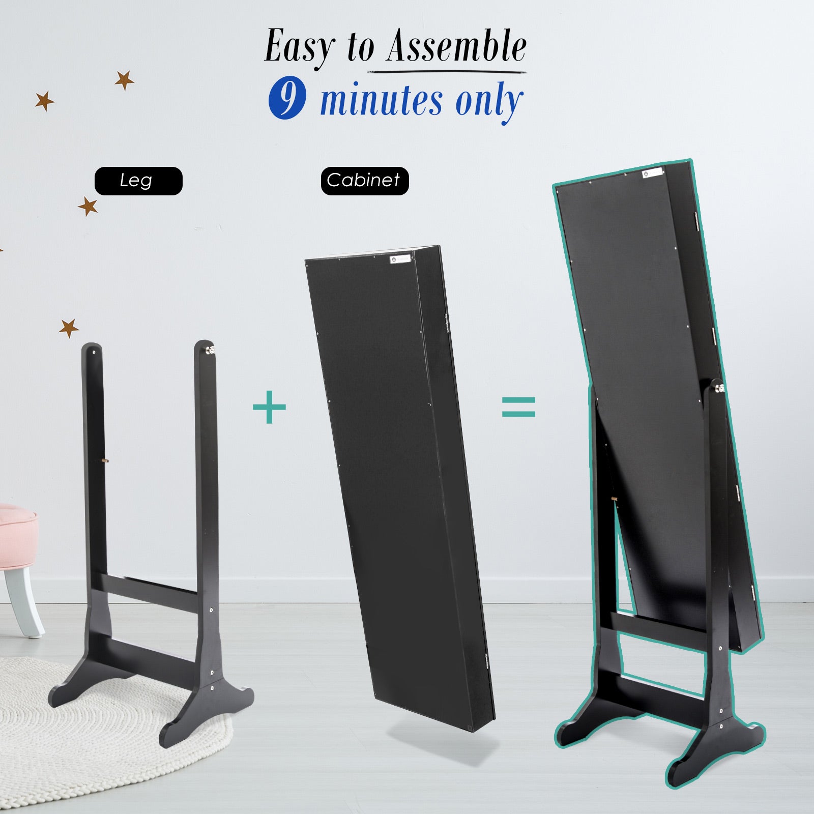 La Bella Mirror Jewellery Cabinet LOWE 146cm Organiser 2 Drawers - Black