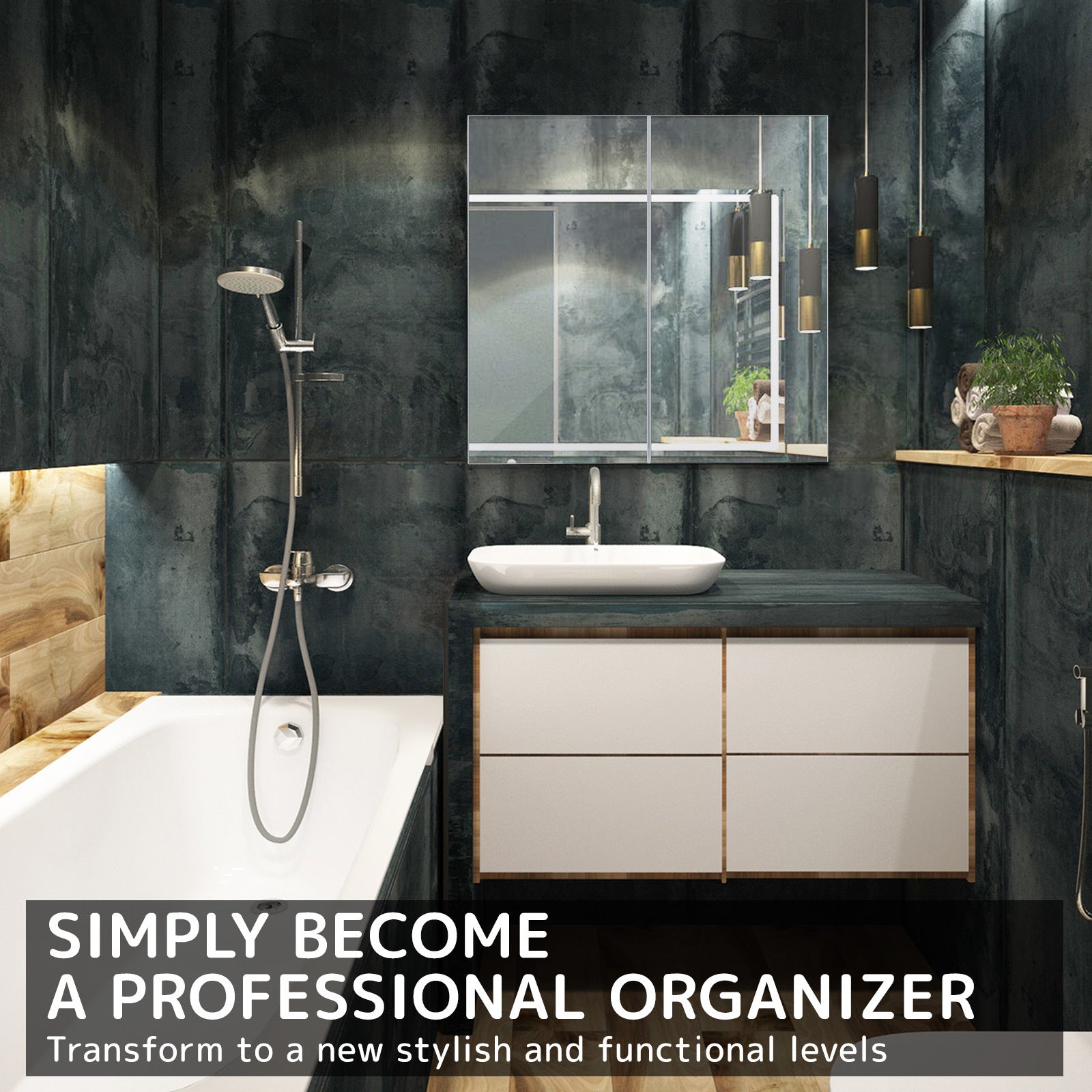 Besides, the copper-free mirror reduces corrosion which offers lucid clarity when shaving or carrying out various facial care tasks. Not to mention its pencil edge and hidden handle mirror cabinet instantly align contemporary flair with a timeless design that works wonders in any room.