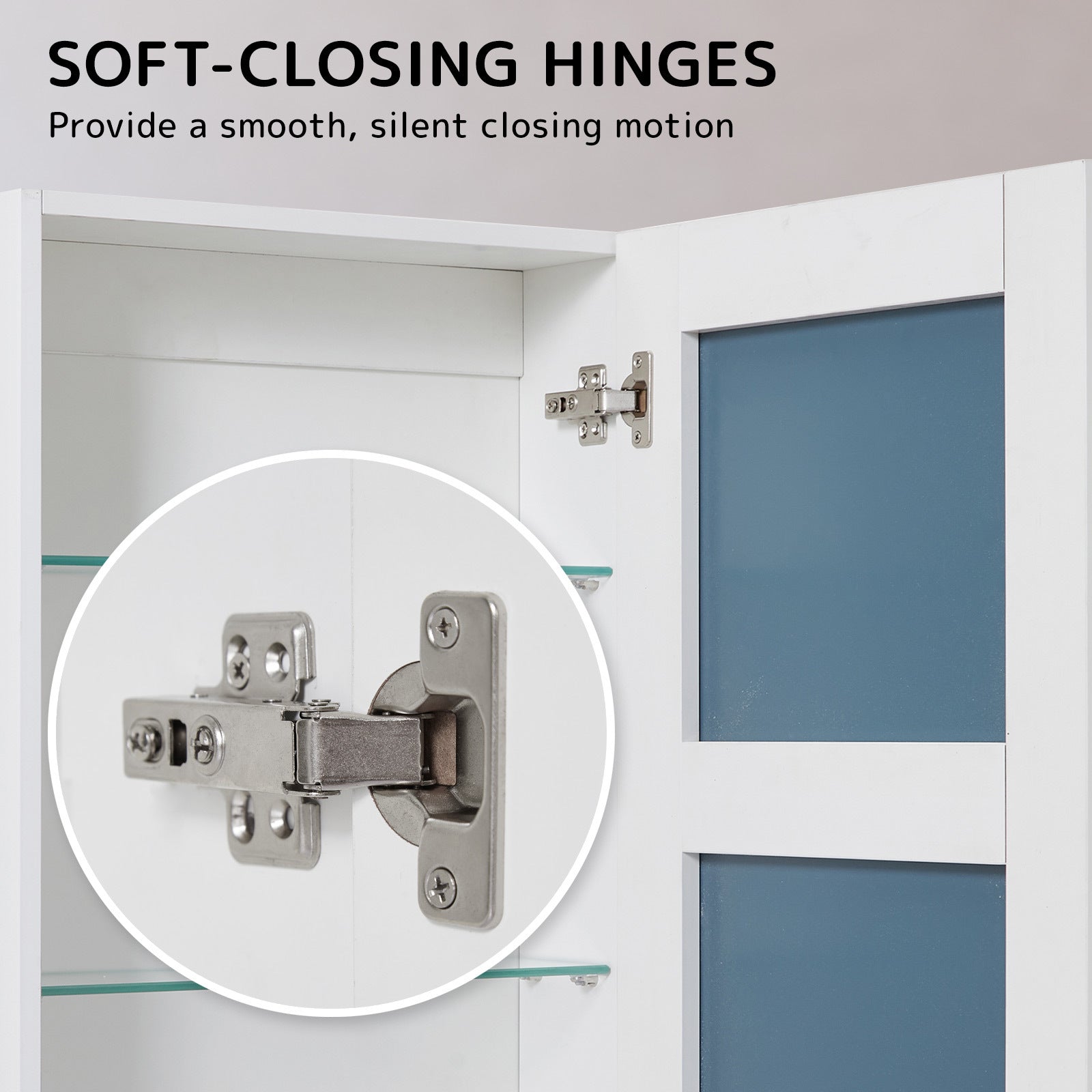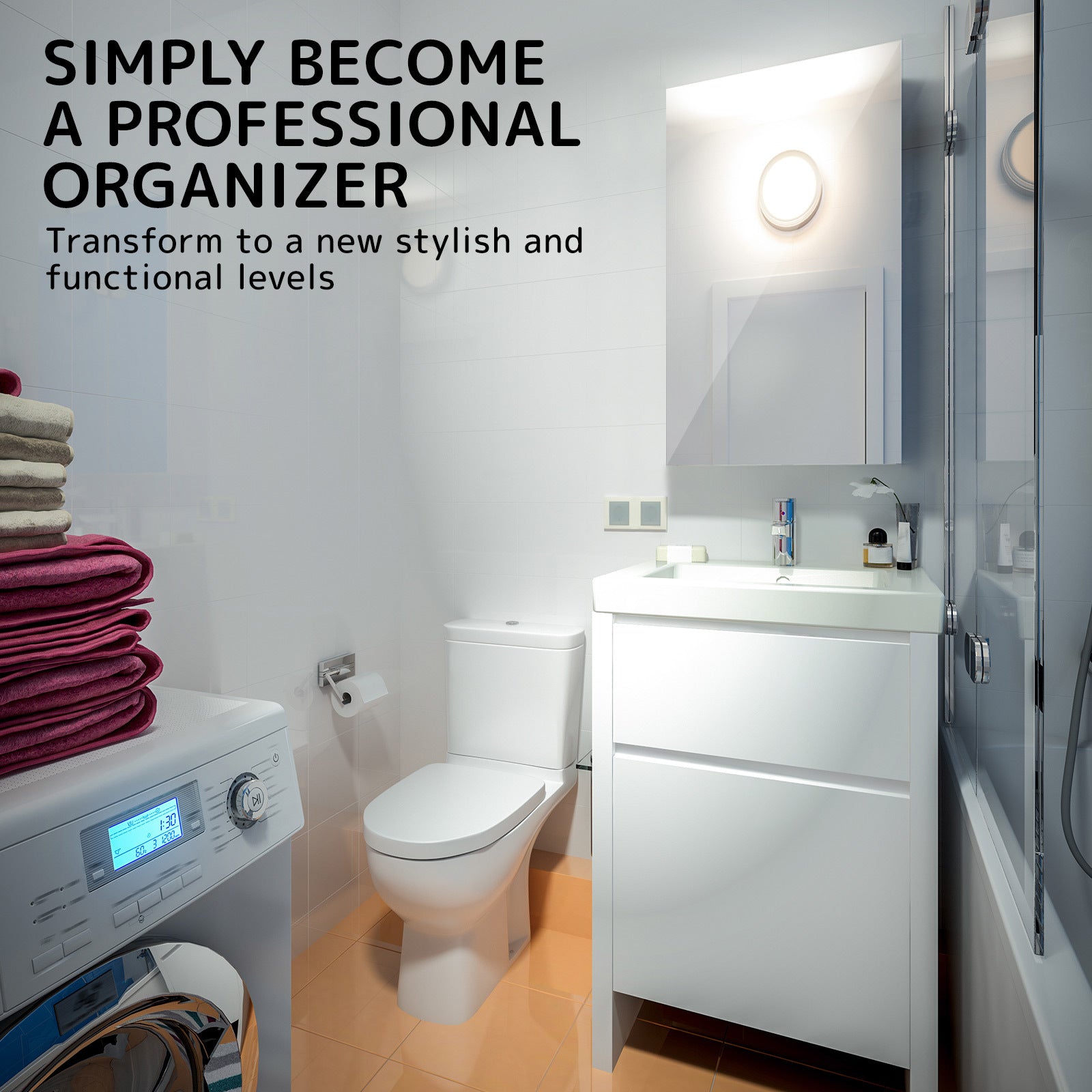 Our robust La Bella Shaving Cabinet features a classic eco-friendly white high gloss PU finish, soft close doors, and non-toxic quality MDF board that offers superb storage. Its adjustable glass shelves not only provide face-level concealed storage, while easily make accessible different sizes of essential everyday items.