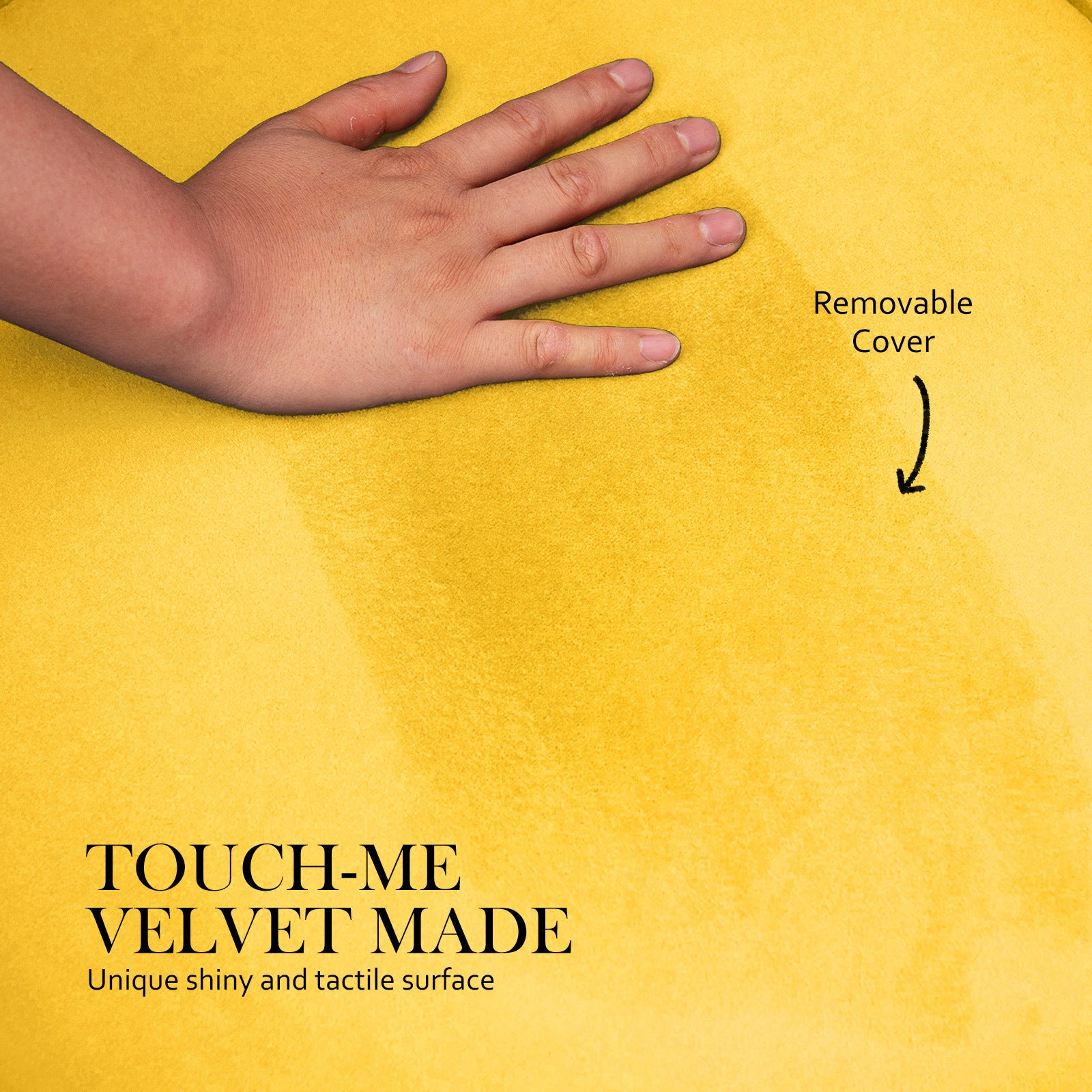 La Bella Ottoman Foot Stool Velvet Fabric Metal Leg Round - Yellow