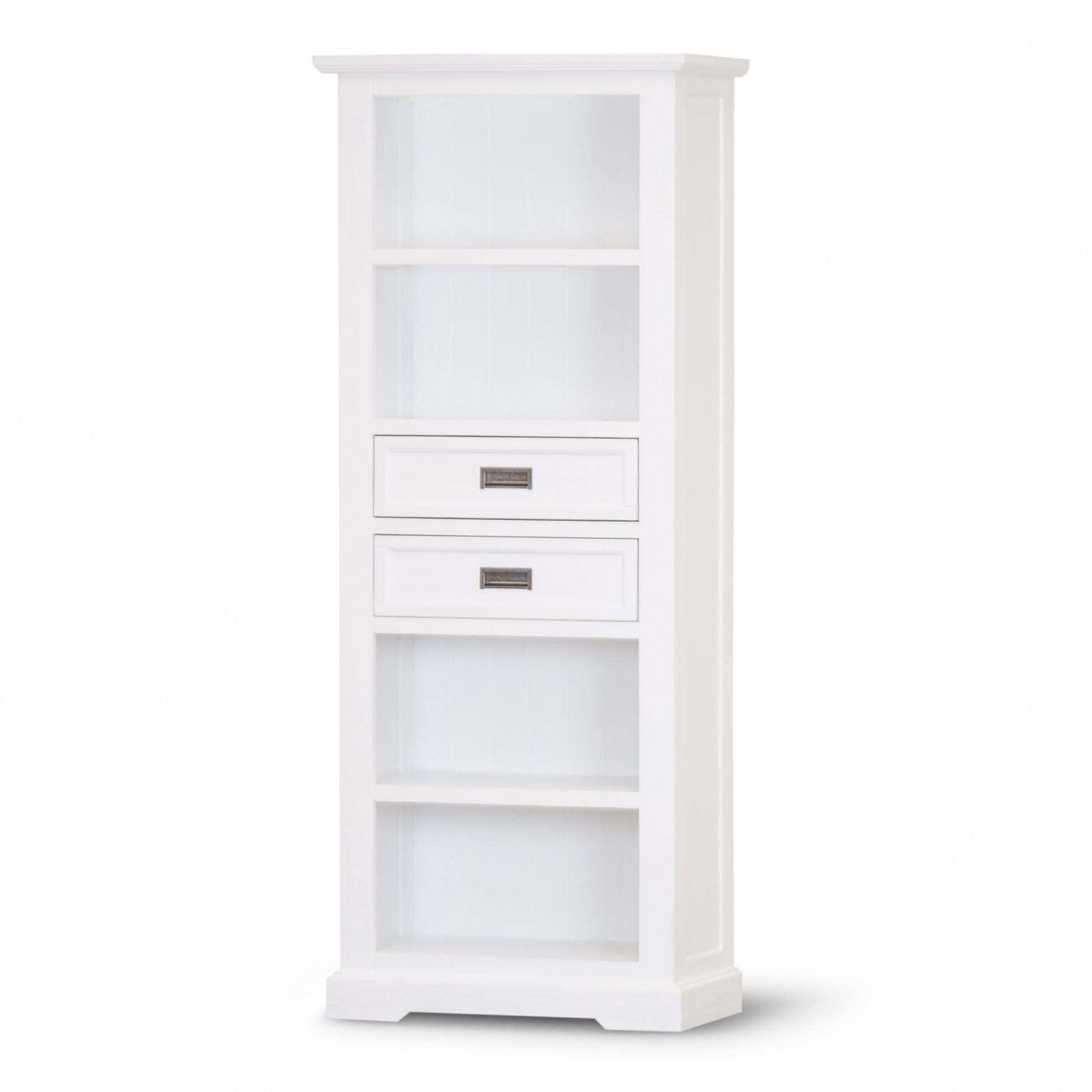 A delightfully useful piece of furniture for book lovers. This sleek and beautifully designed bookcase is composed of sustainably sourced Solid Acacia and MDF. It has 4 large open shelves and 2 drawers with full-extension metal runners. The wood ensures the strength and durability of the bookcase for years to come. The good looking bookcase is angled just at the right places to maximize its clean line aesthetics.Designed in the coastal style, the stunning bookcase features a minimalist, functional, and contemporary design. Due to the vivid white colour, it exudes a serene feel in the atmosphere, which helps in creating a nice ambience in the living area. The bookcase comes with a one-year warranty.