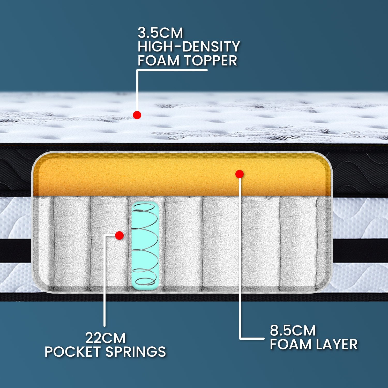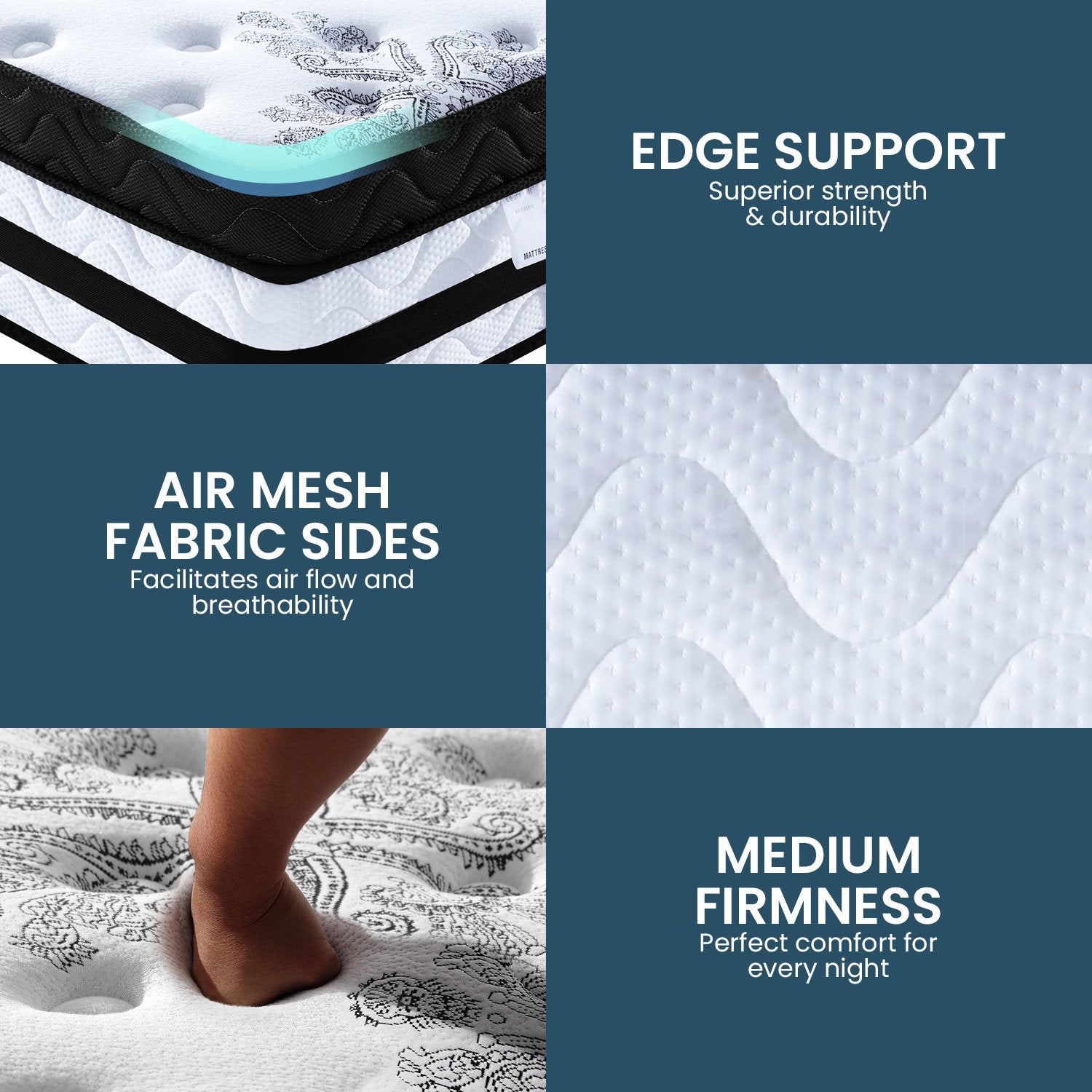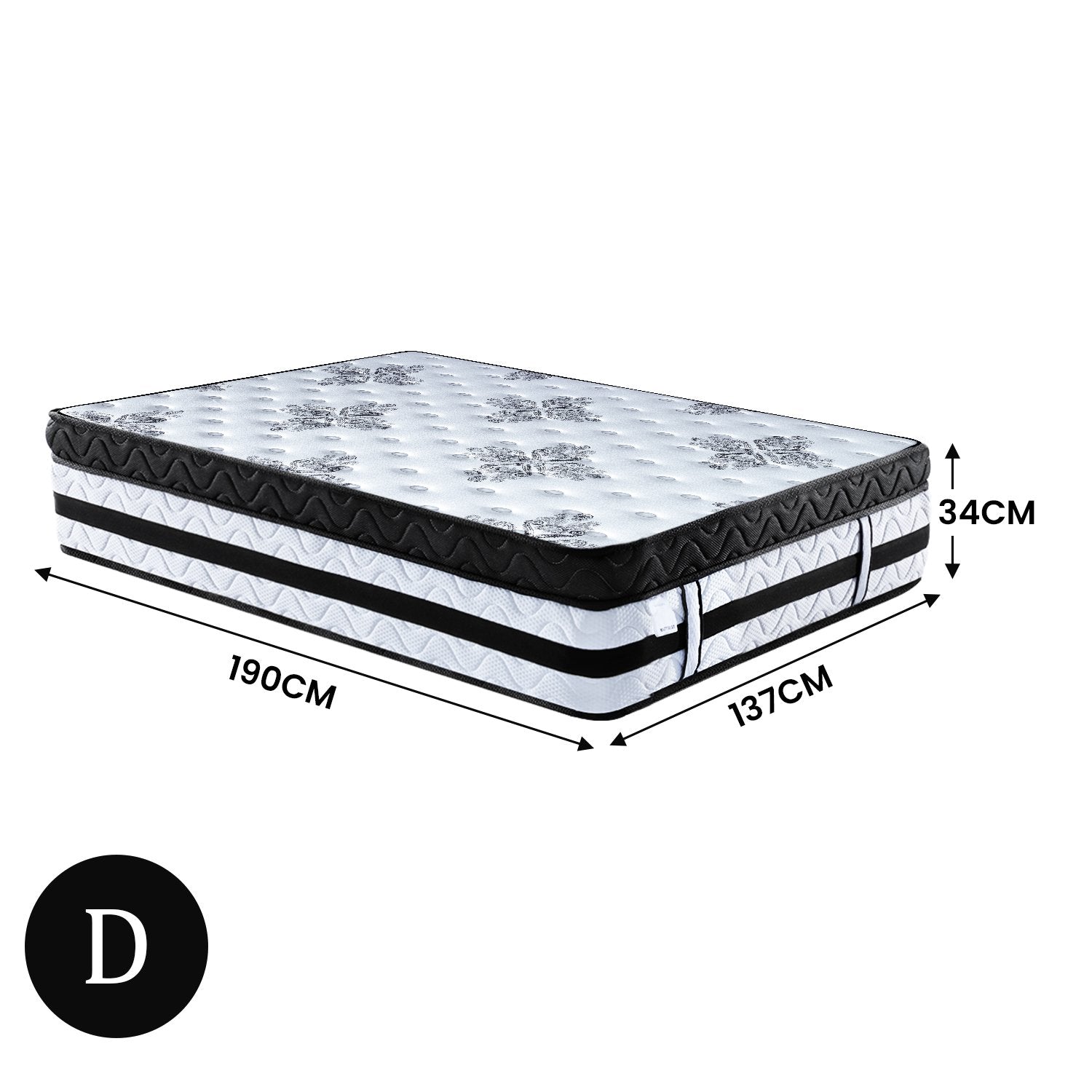Laura Hill Double Mattress Bed Size Euro Top 5 Zone Spring Foam 34cm Bedding Pocket