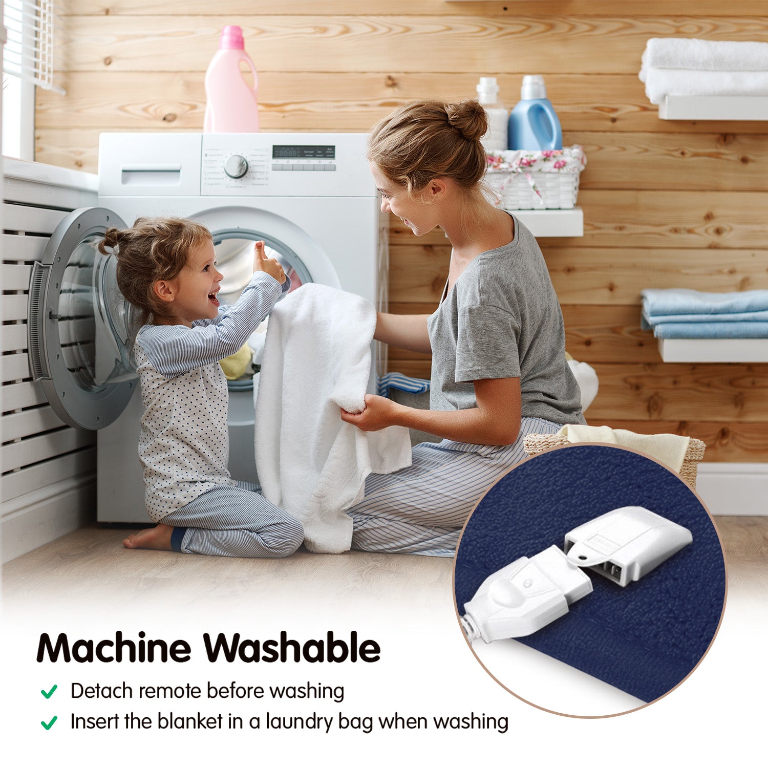With its soft fleece finish, this electric blanket has detachable multi-temperature controls, so you can choose your own level of coziness with 9 temperature settings. This quick set timer button also incorporates an easy access off switch button and one-touch timer.
