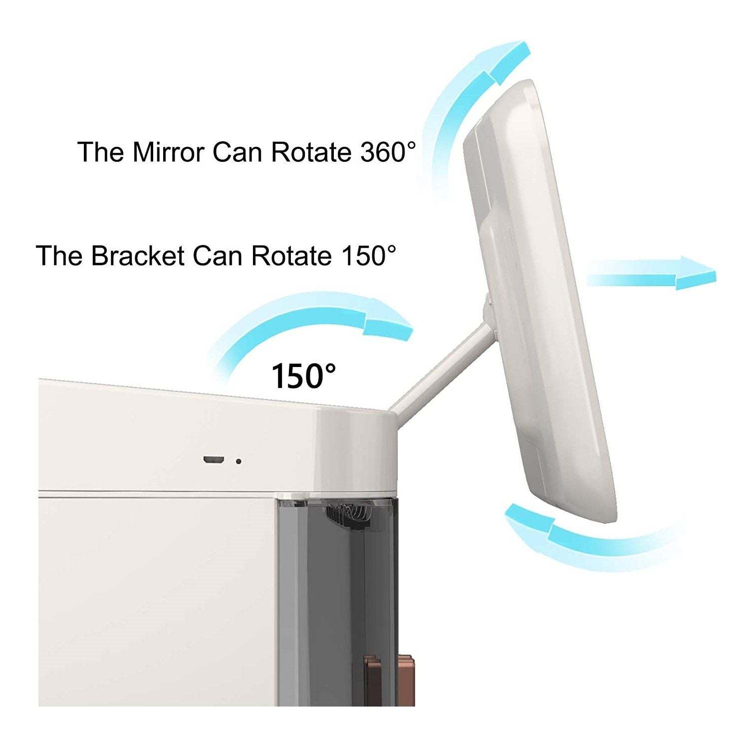 - LED Mirror: This makeup organizer box is equipped with a LED mirror, you can get enough light even in dimly lit places to draw beautiful makeup. The mirror 360 degree swivel provides vertical rotation for optimum angle viewing. Long press to adjust the brightness. Touch the button once to turn the light on, and touch it again to turn the light off.