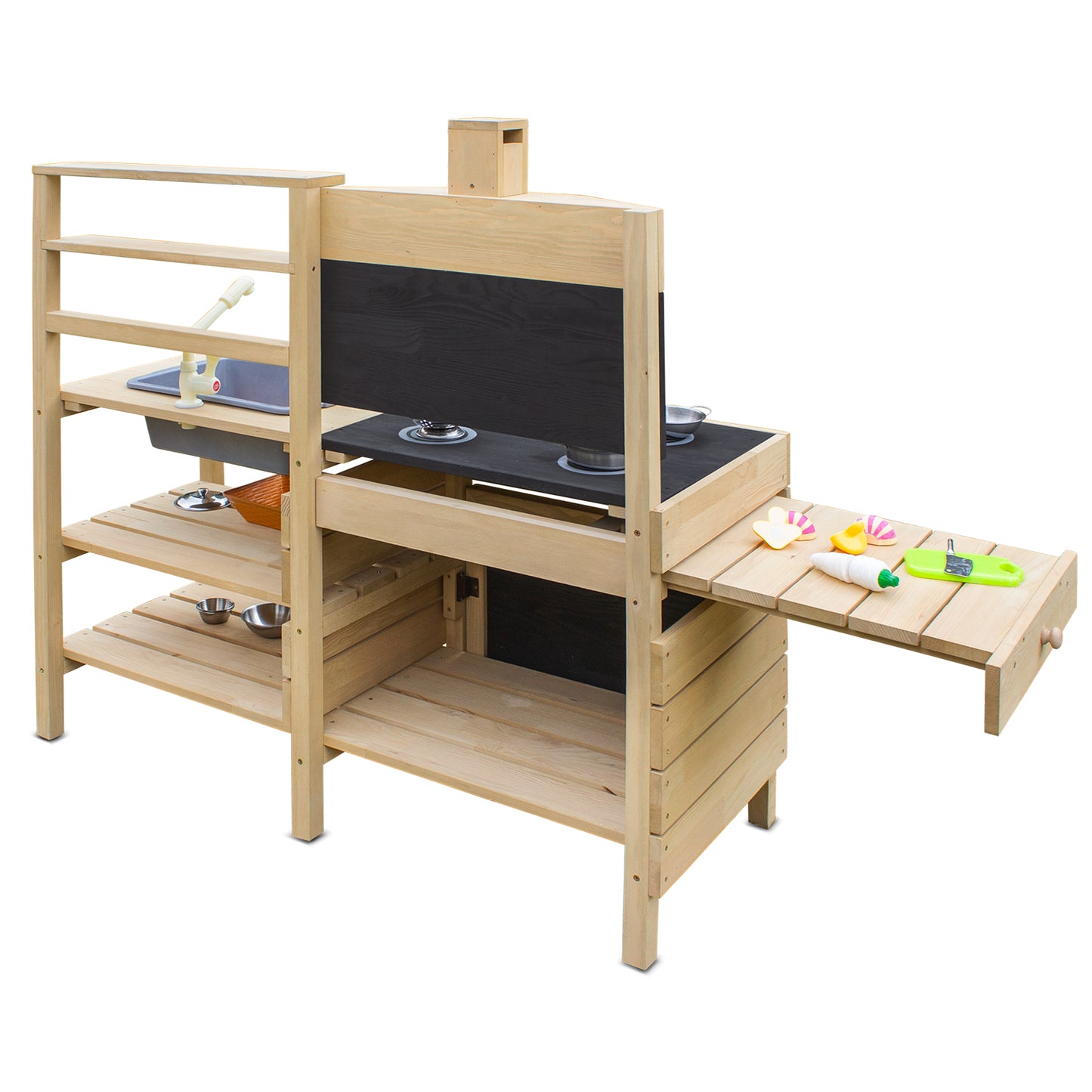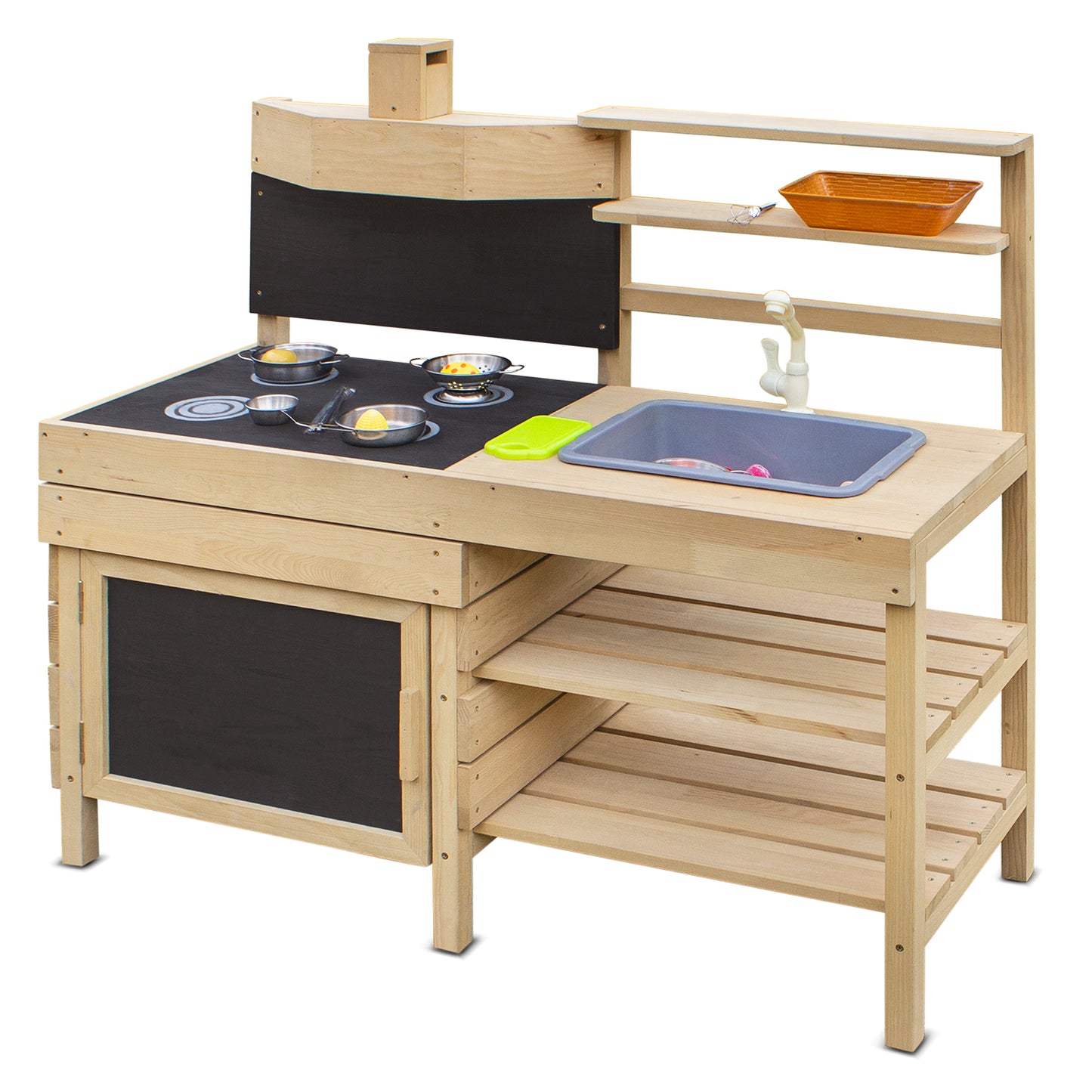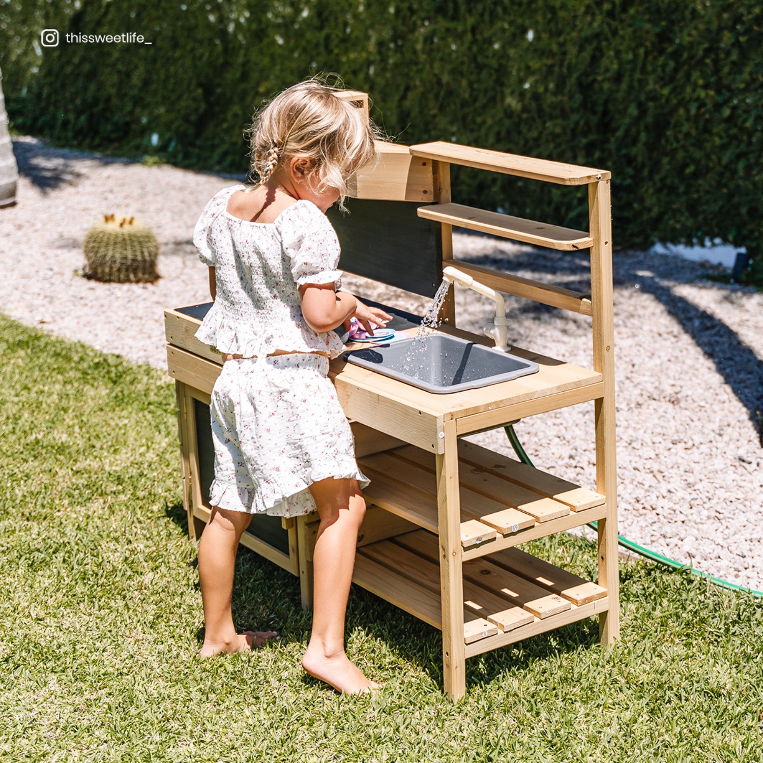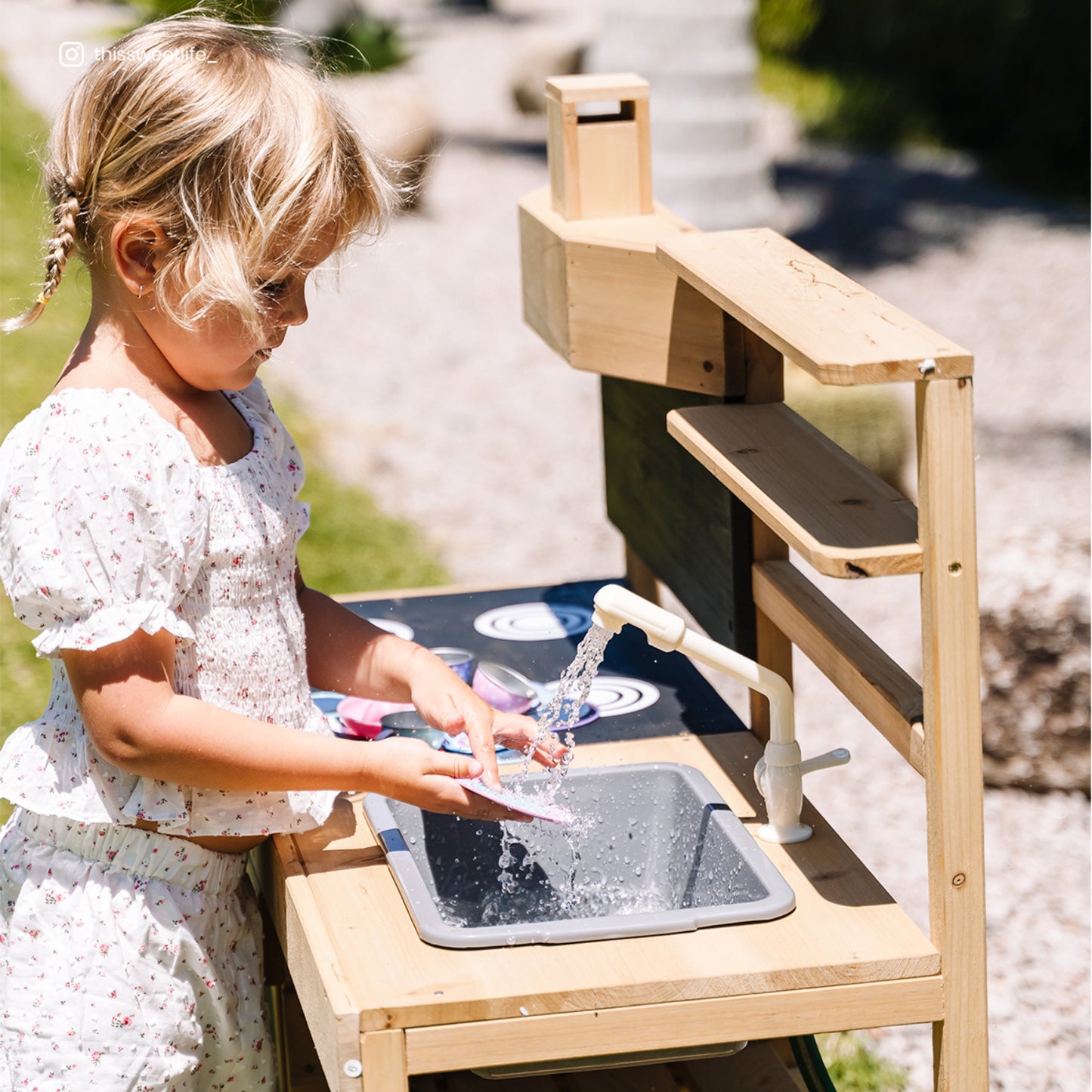 Showcase their cooking skills with the Ramsey Outdoor Play Kitchen. Keep your little ones playing all day with the perfect outdoor kitchen set, featuring a cooktop, sink and retractable table. The Ramsey Outdoor Kitchen is built to last with premium weather protected timber.
