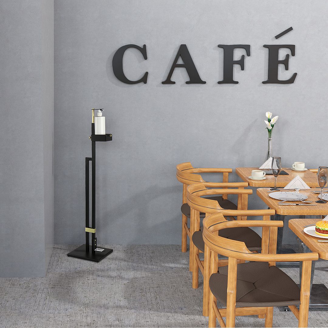 The Lirash Touch Free Hand Sanitiser Dispenser Station Floor Stand Foot Operated - Gold Black makes hand hygiene convenient and extremely easy to implement in both commercial and residential settings. With the flexibility of placing any sanitiser bottle you like, this stand is ideal to make sanitisation accessible within retail shops, workplaces, cafés, restaurants, libraries, medical centres, schools and more.
