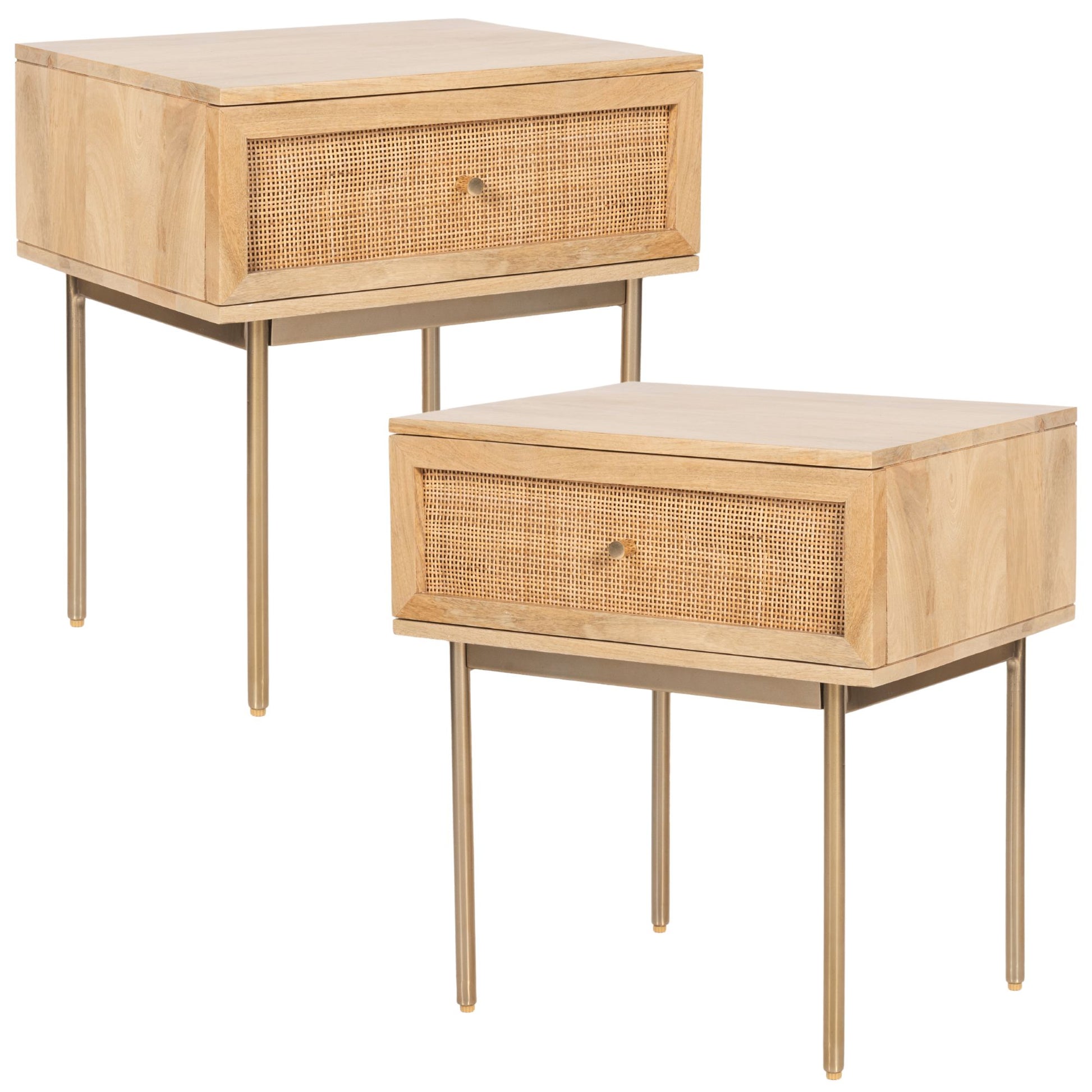Martina Set of 2 Bedside Table 1 Drawer Storage Cabinet Solid Mango Wood Rattan