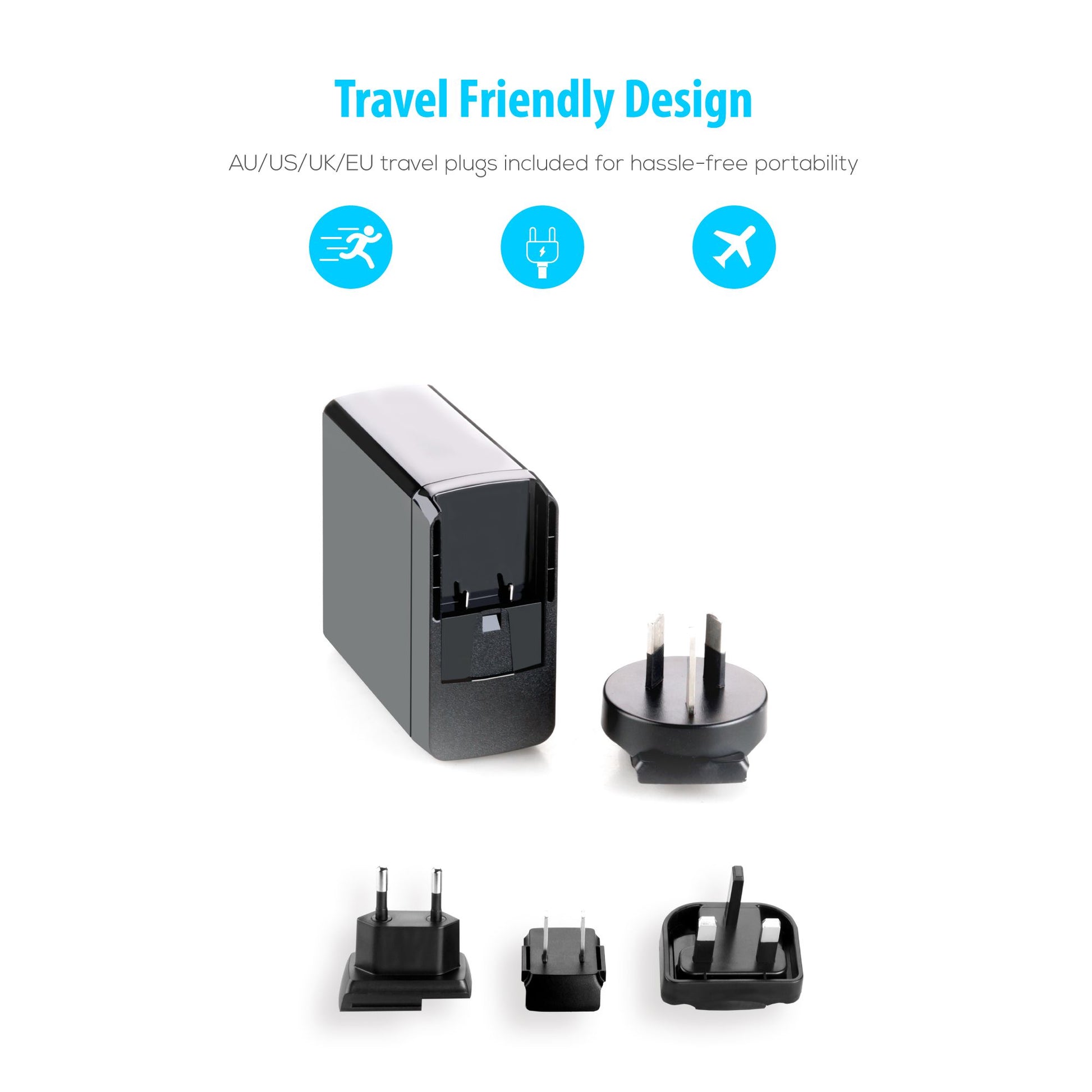 - Package contents: 1 x USB-C Charger Multiple Plugs (US, AU, UK, EU), 1 x USB-C Charging Cable, 1 x User Manual, 1 x Carry Pouch